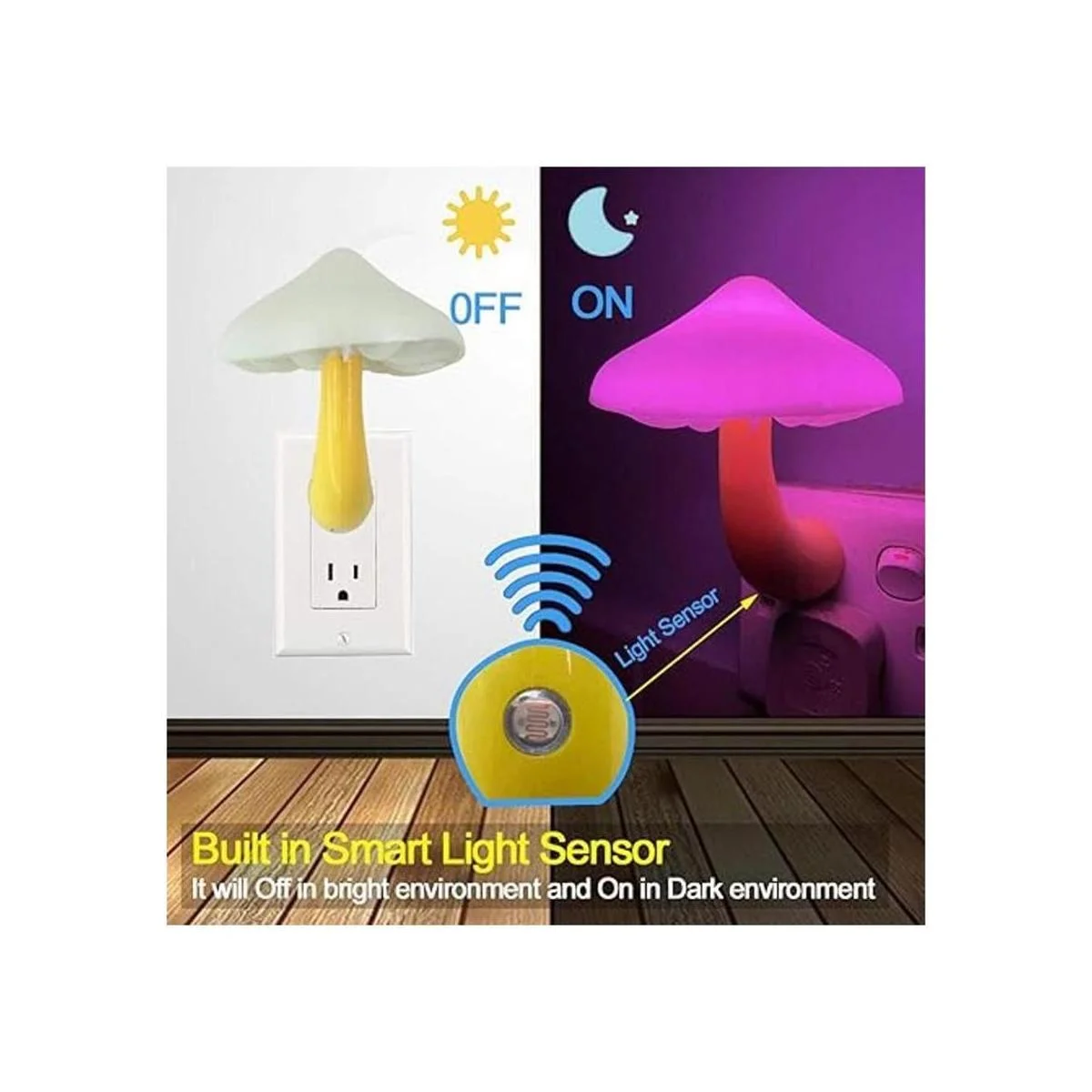 UTLK Lámpara de noche LED enchufable con sensor del atardecer al amanecer, cama LED enchufable, bonita lámpara nocturna de hongo, luz de pared para bebés y niños