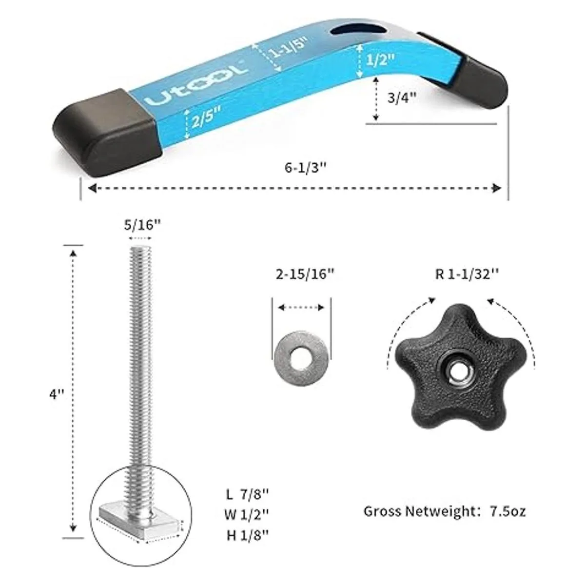 UTOOL Paquete de 2 abrazaderas de sujeción en T, 512 pulgadas de largo x 118 pulgadas de ancho, azul