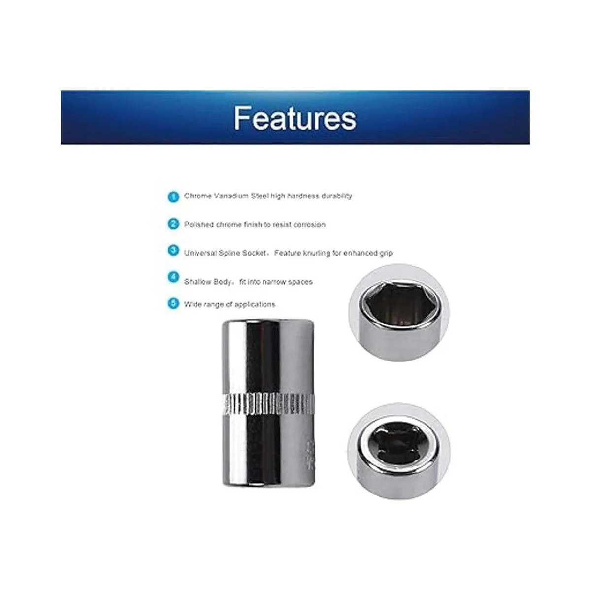 Material: el enchufe de accionamiento poco profundo de 6 puntos está hecho de acero al cromo vanadio CRV con durabilidad confiable. Nuestro enchufe métrico de impacto poco profundo está chapado en cromo espejo, que acabado para resistir la corrosión.