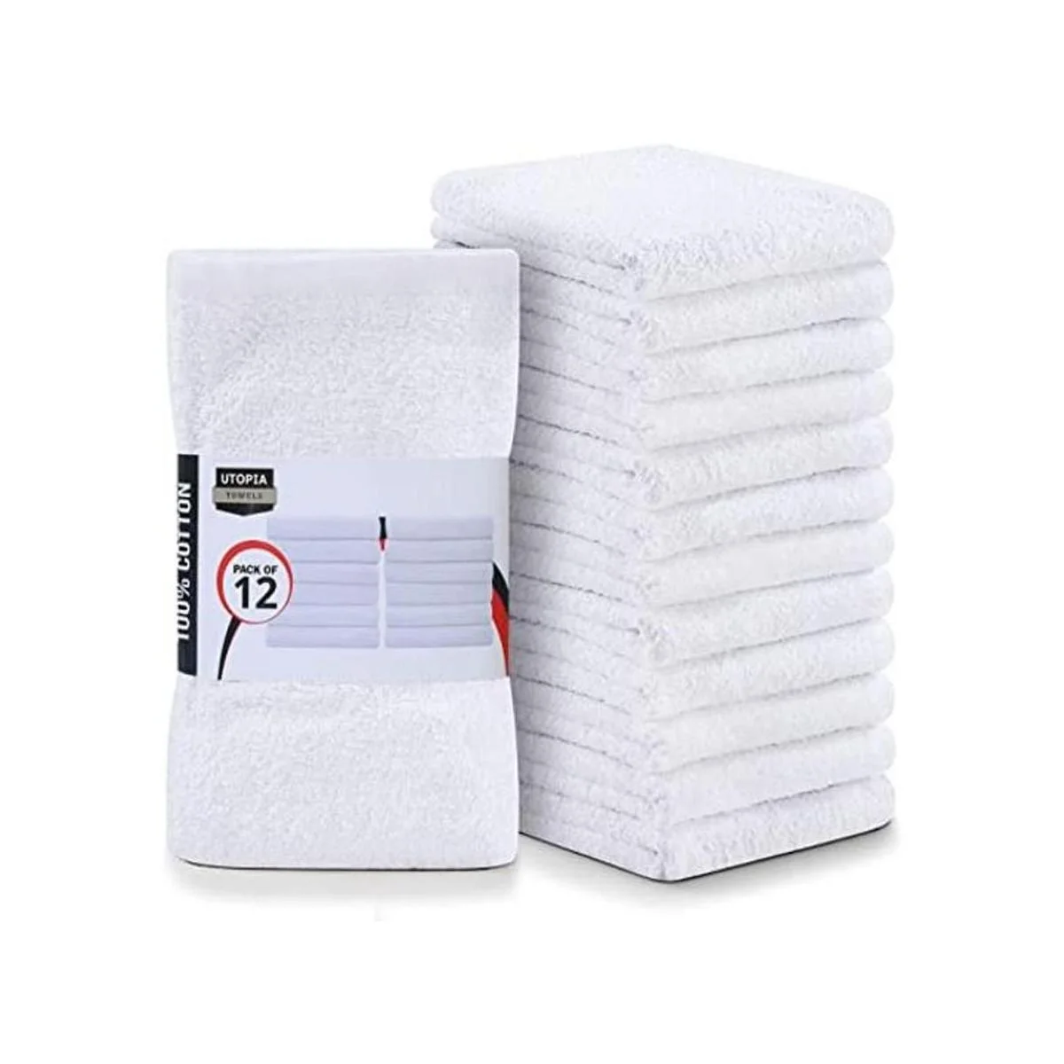 Utopia Toallas de limpieza, paquete de 12 toallas para cocina y bar, 16 x 19 pulgadas, 100 algodón súper absorbente, toallas de limpieza multipropósito para el hogar la cocina y el bar, blanco