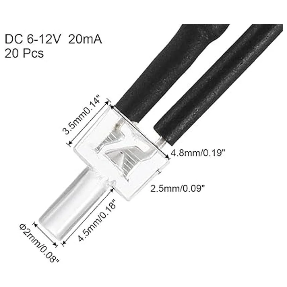uxcell 20 bombillas LED con cable de 0.079 in, luz blanca DC612 V, diodos emisores de luz