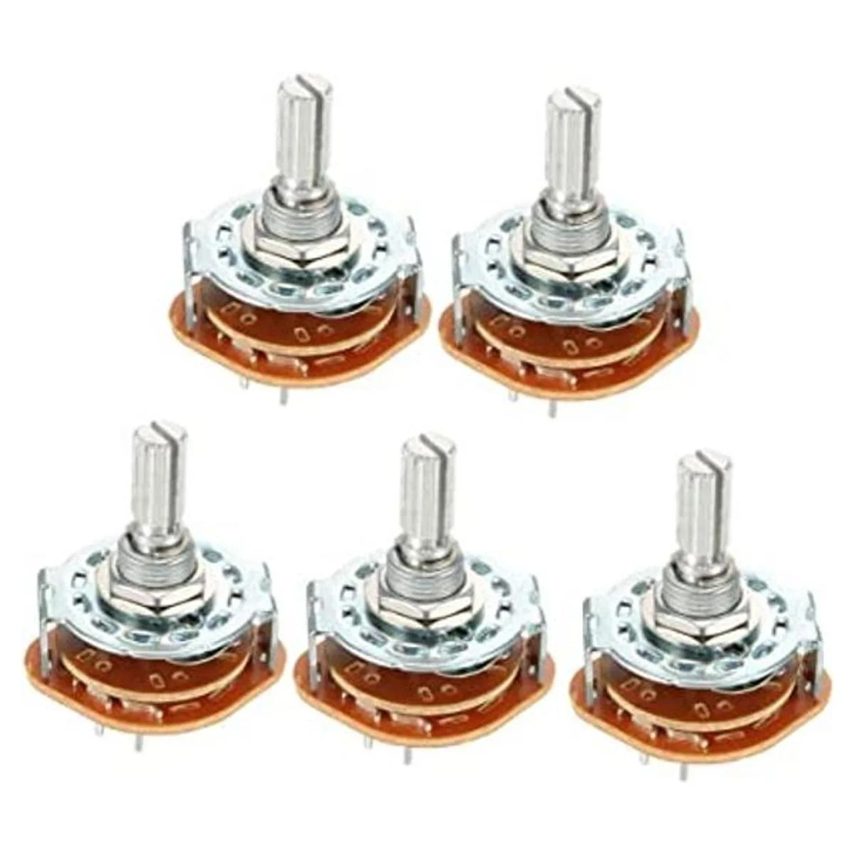 uxcell 2P4T Selector de interruptor rotativo de canal de banda de cubierta individual de 2 polos, 4 posiciones, 5 unidades