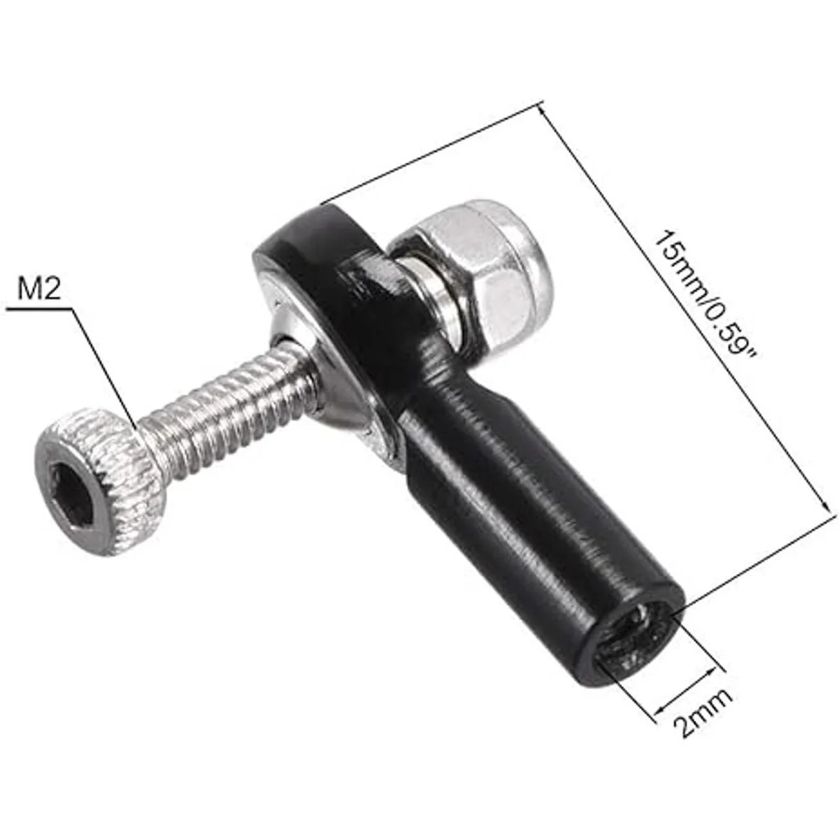Características: longitud total: 0.591 in, rosca inferior: M2 apto para barra de acoplamiento con rosca M2. Diámetro del agujero de la cabeza de bola: 0.079 in compatible con tornillo y tuerca M2