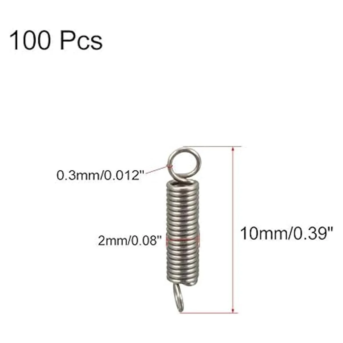 uxcell Alambre de resorte comprimido extendido diámetro 0,012 pulgadas, OD 0,08 pulgadas, longitud libre 0,39 pulgadas de acero inoxidable pequeño doble gancho resorte de tensión 100 piezas