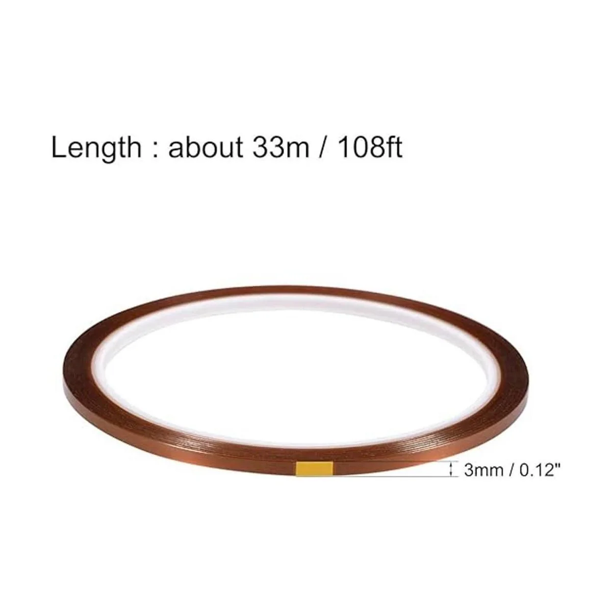Ancho: 0.118 in. Longitud: alrededor de 108.3 ft. Material: Poliimida duradera y silicona.