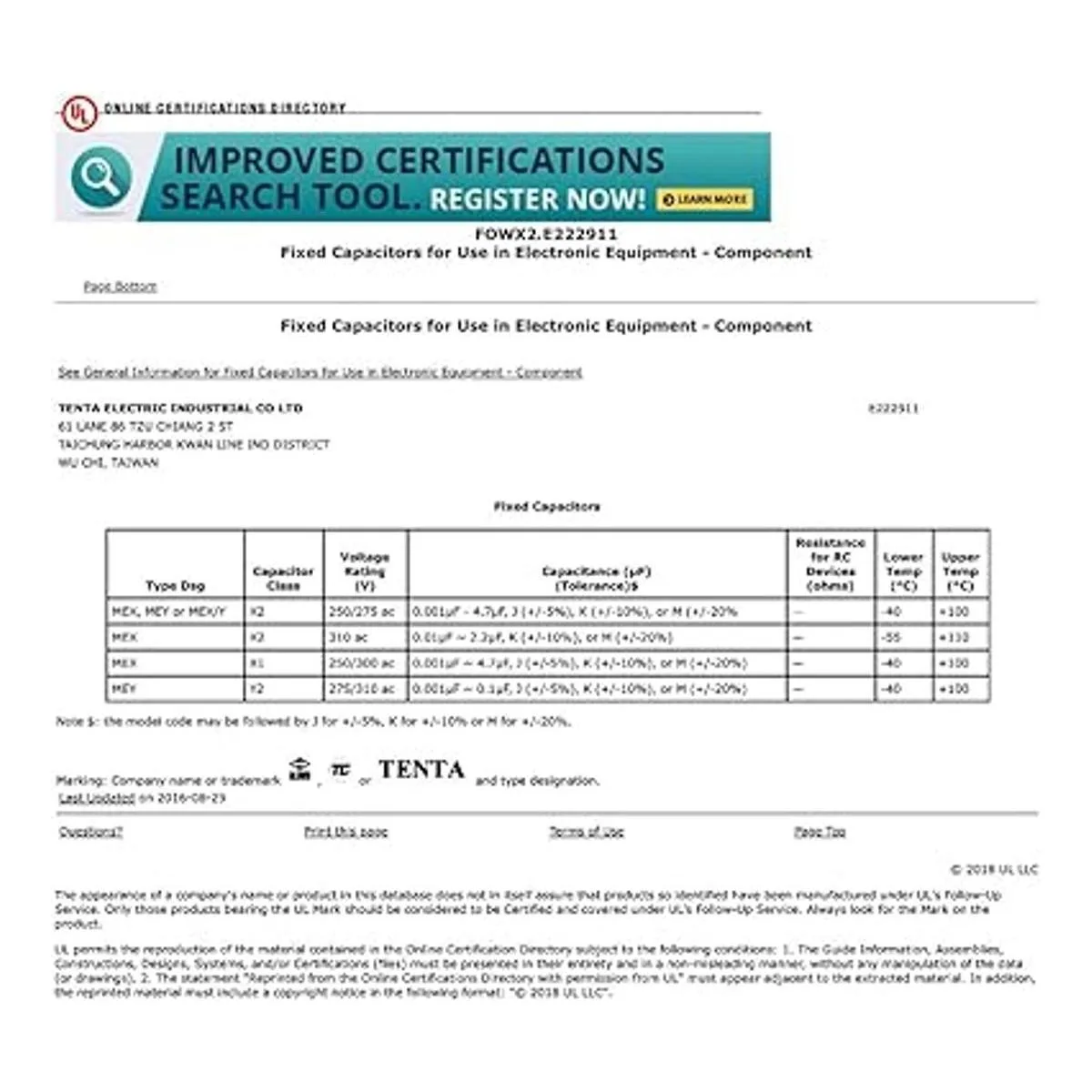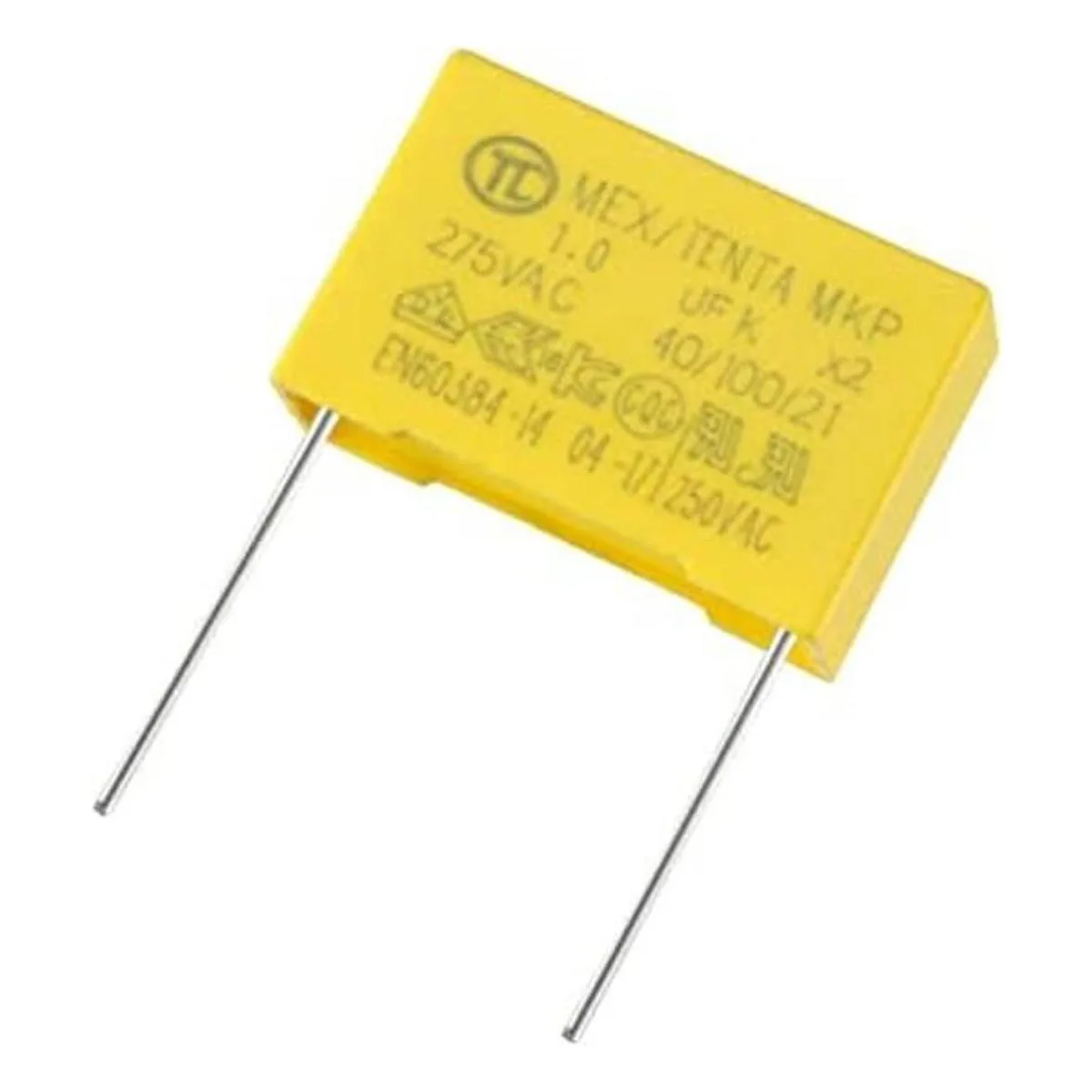 Capacitancia: 1uF; Tolerancia: K 10; Voltaje soportado: 275 V CA.