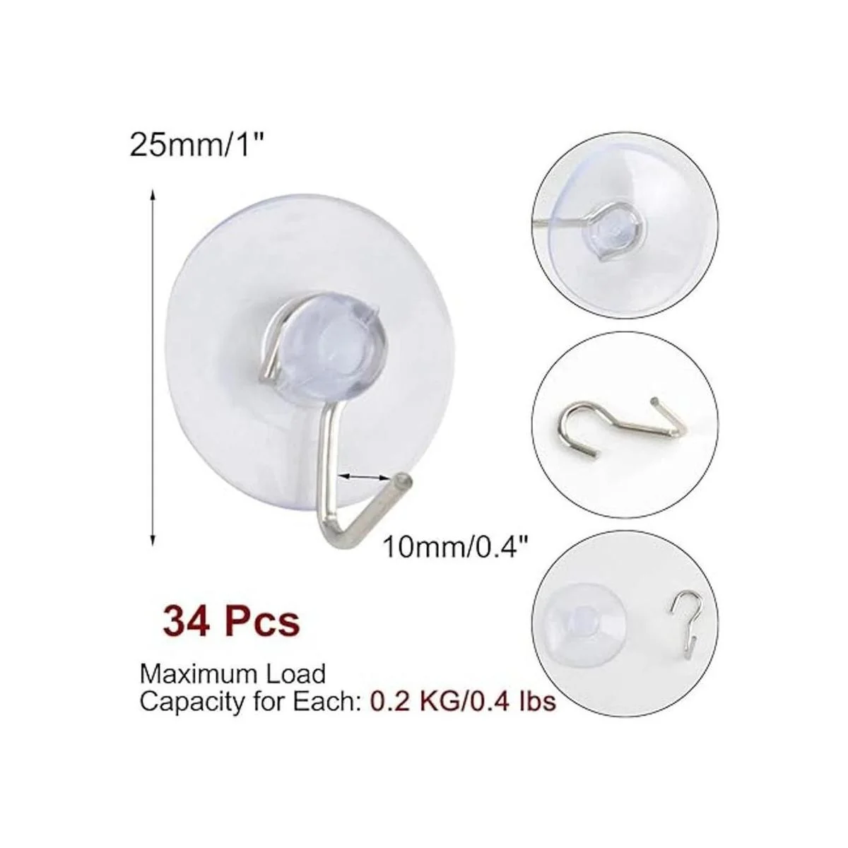 El paquete incluye: diámetro de la ventosa: 0.984 in, viene con 34 ganchos de succión, cada gancho puede soportar un peso de 0.4 libras, el gancho de metal y la ventosa están separados, por favor combinar juntos antes de su uso
