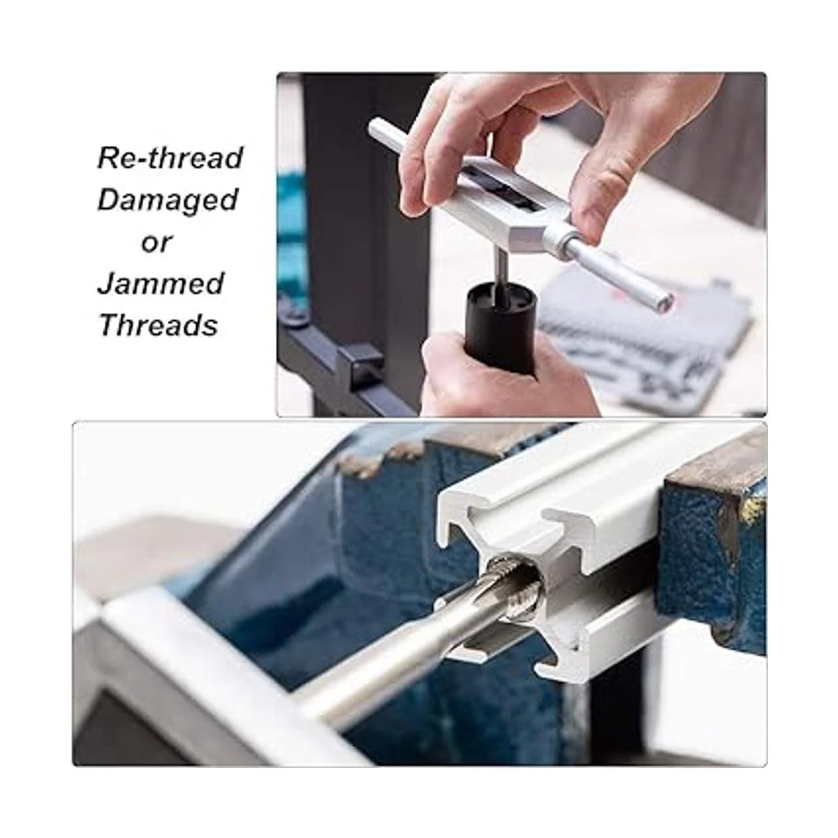 El grifo de mano se utiliza para volver a enhebrar roscas dañadas o atascadas, también se utiliza para enhebrar aceros suaves.