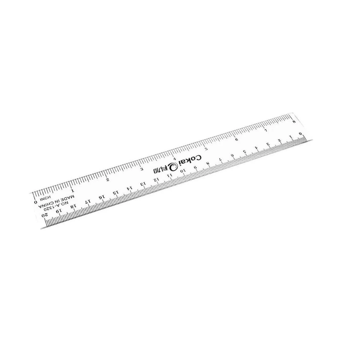 Regla de medición de doble cara, la escala de centímetros está en un borde de la regla y la escala de pulgadas está en el otro borde.