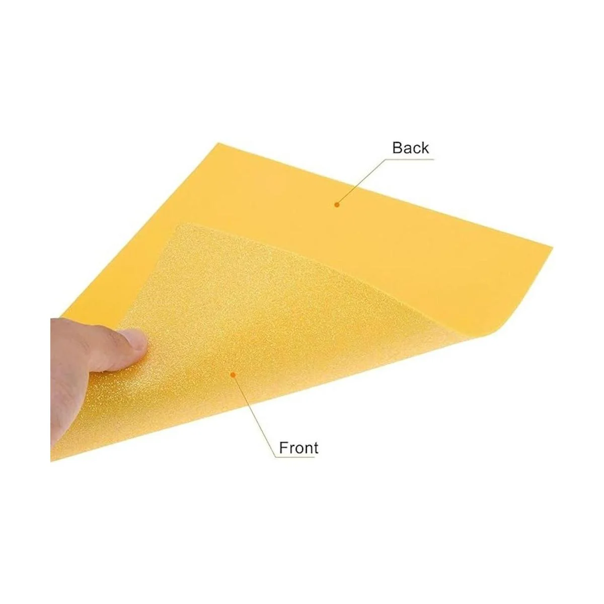 Hecho de espuma EVA, el papel brillante se siente como papel de lija y casi nunca se despega.