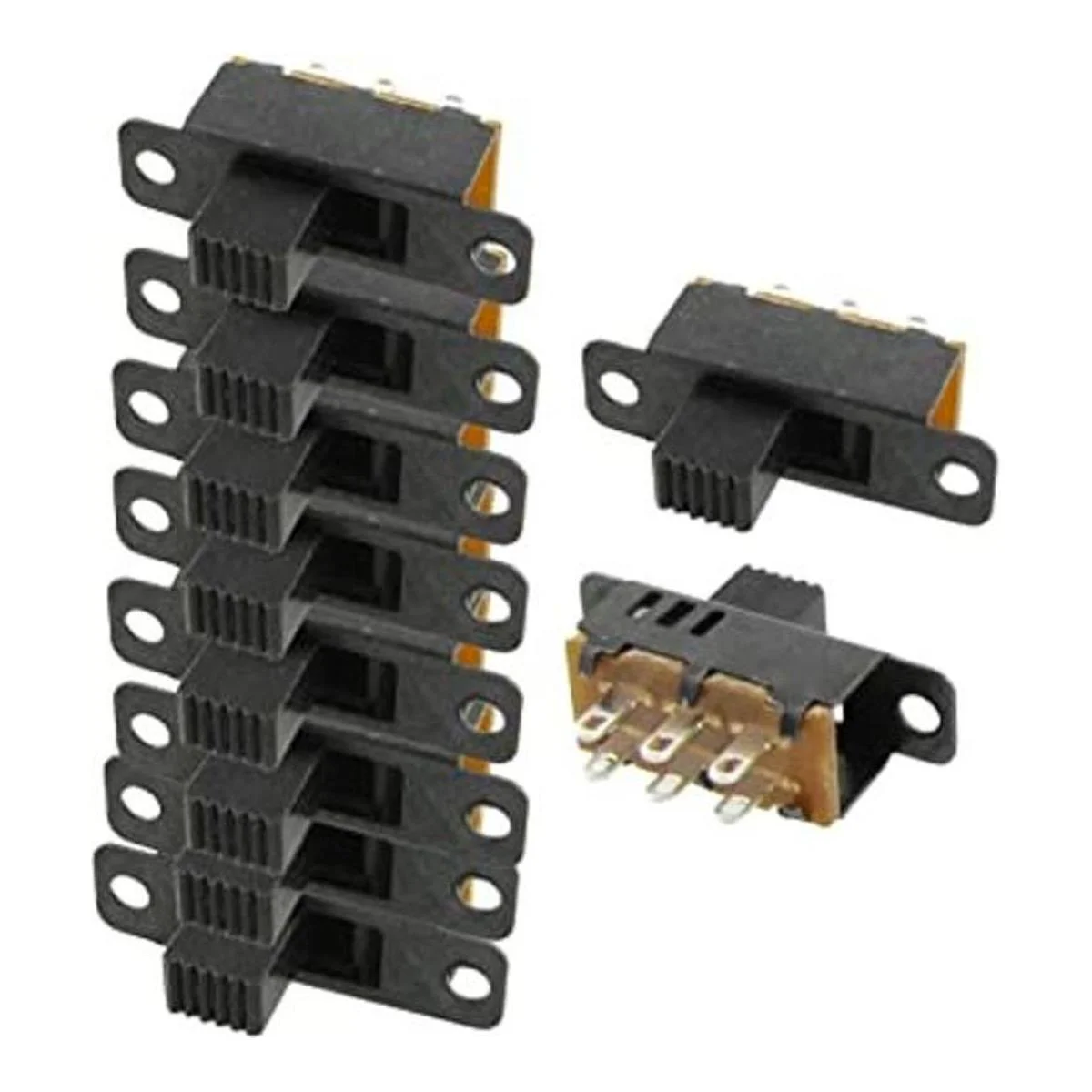 Color principal: negro. Peso: 0.63 oz. Contenido del paquete: 10 interruptores deslizantes