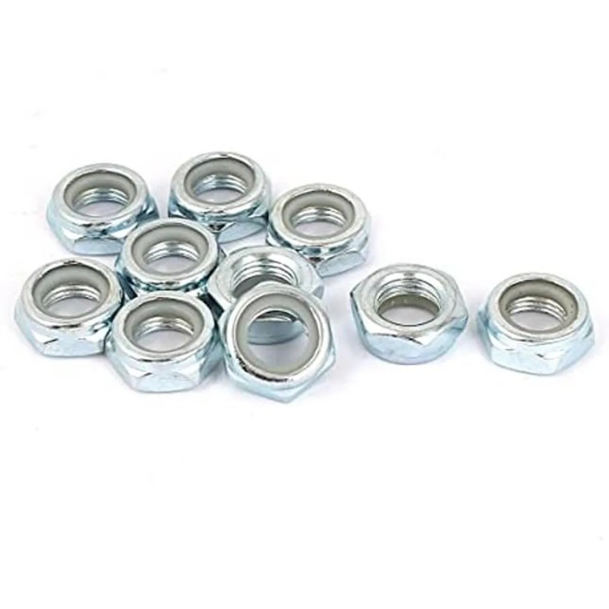 uxcell M12x1.0.984 in Tuerca de bloqueo hexagonal de nailon autobloqueante chapada en zinc, 10 unidades