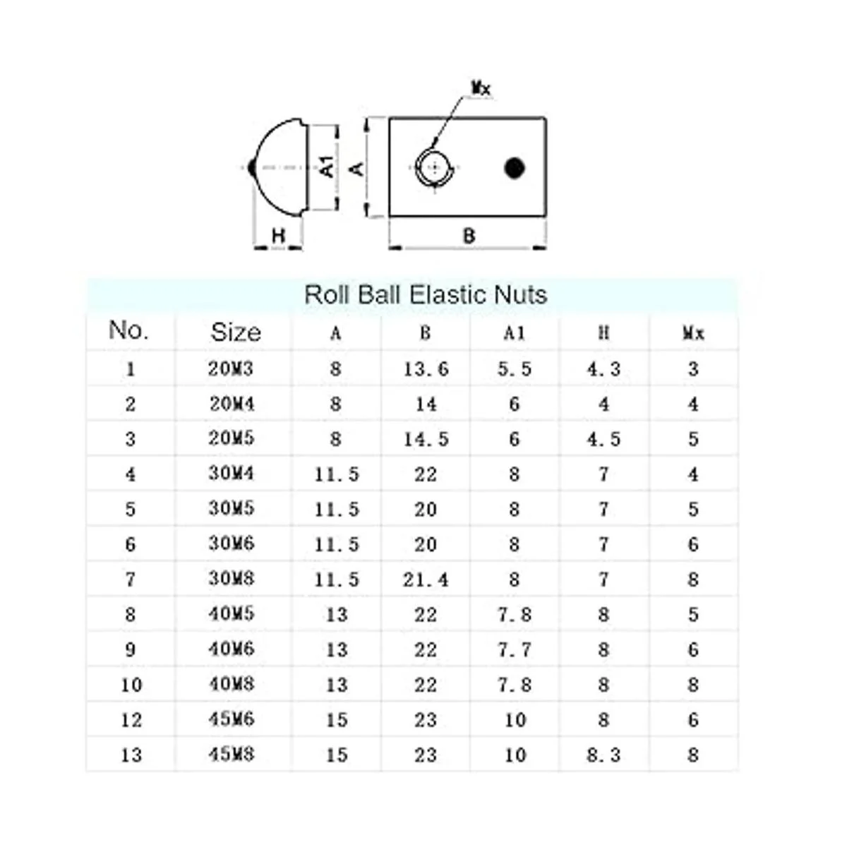 Contenido del paquete: 12 tuercas en T elásticas de bola de rollo M8 de la serie 4545.