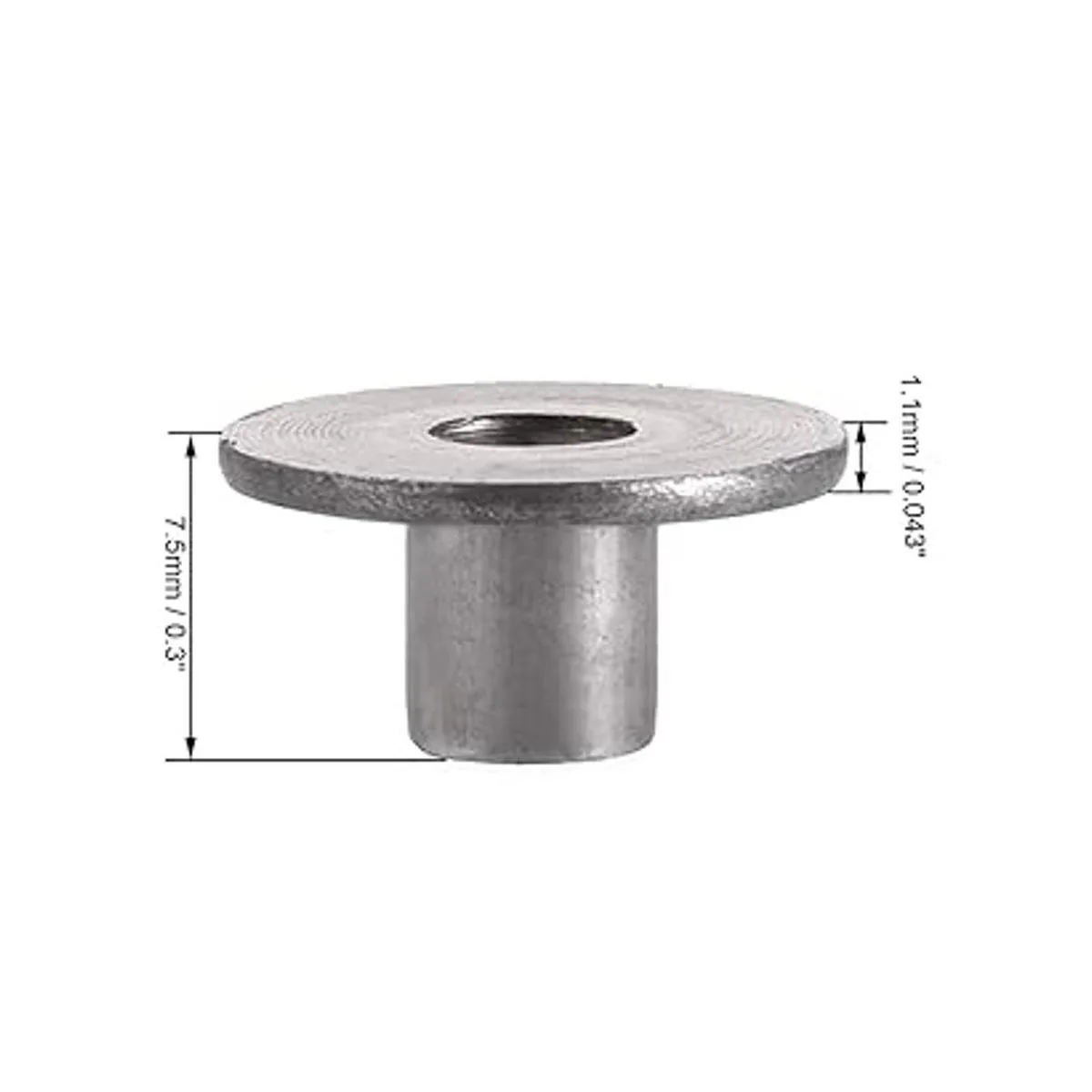 Especificaciones: roscas M4, diámetro de base redonda de 0.591 in, grosor de base redonda de 0.043 in, altura total de 0.295 in.