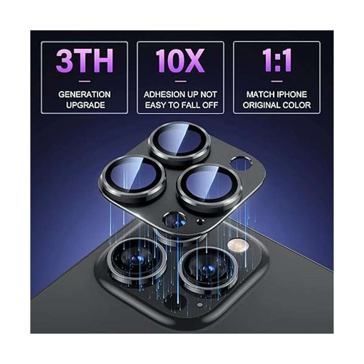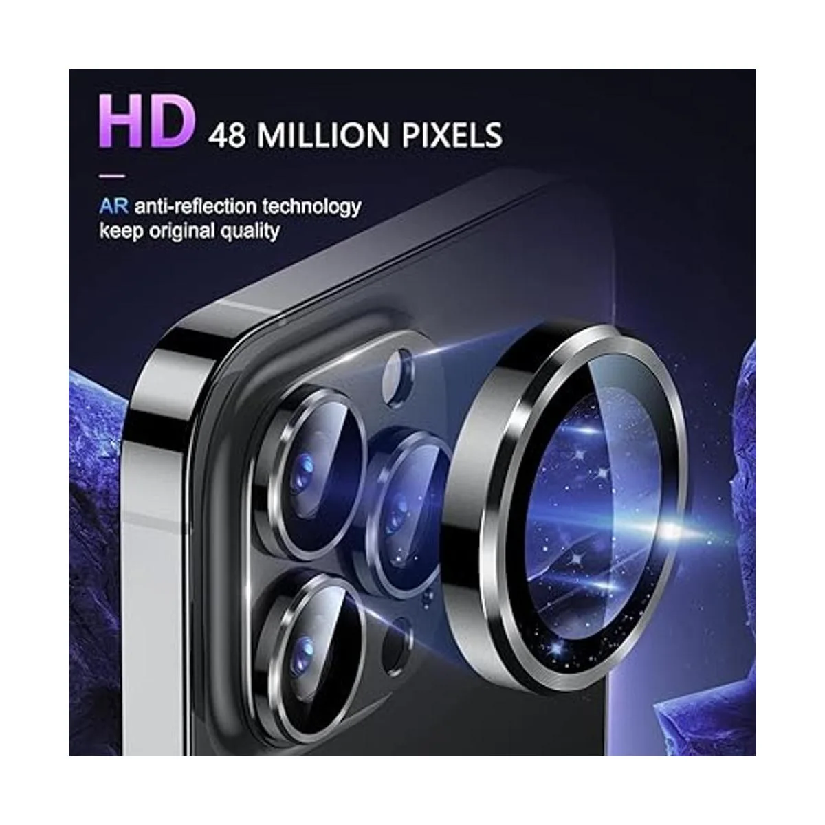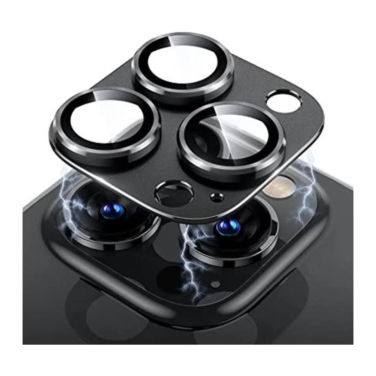 Uyiton Protector de lente de cámara para iPhone 14 ProiPhone 14 Pro Max, protección contra caídas Cubierta de cámara de vidrio templado 9H, funda de anillo de metal, resistente a los arañazos, fácil de instalar, color negro
