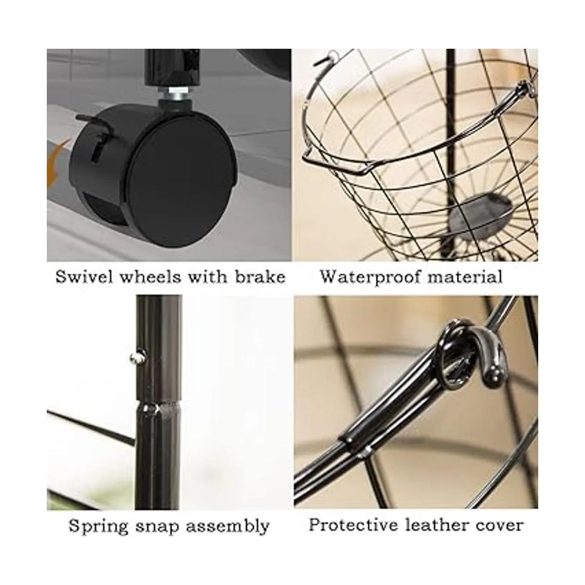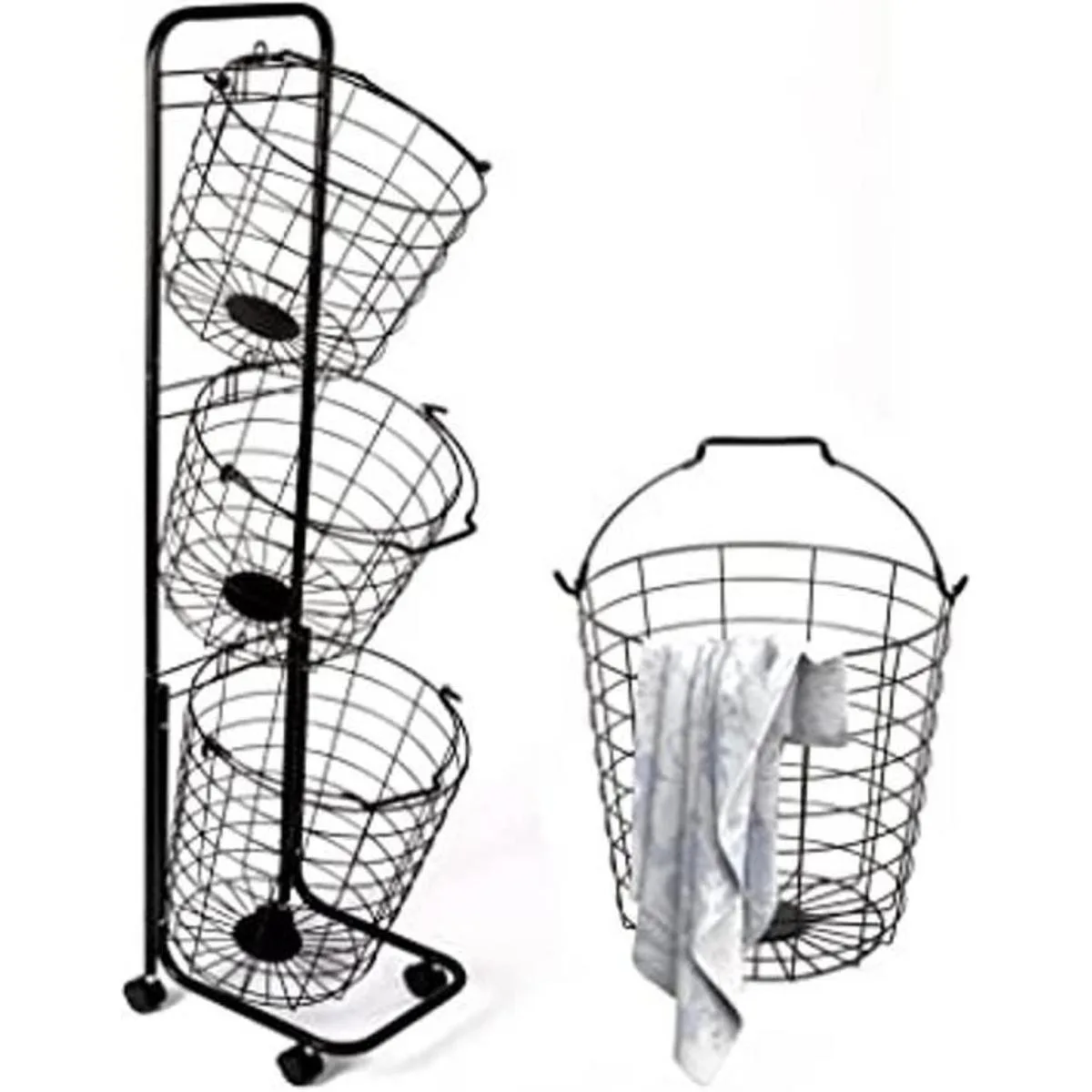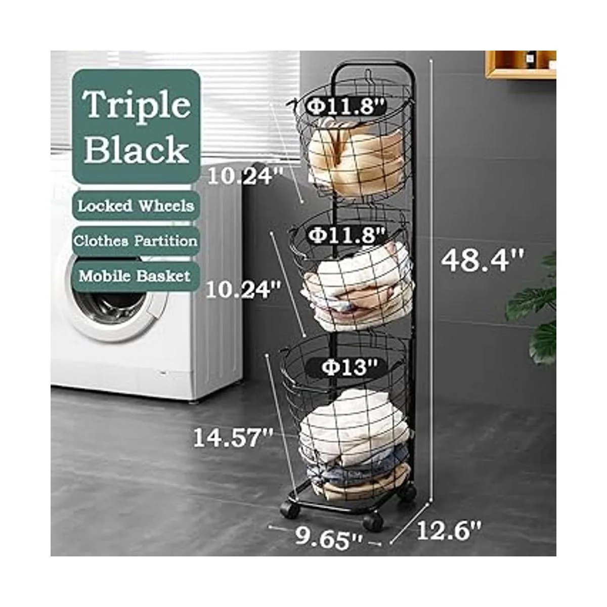 Tamaño : Dimensiones totales: 14.17 x 13 x 48.4 pulgadas largo x ancho x alto; dimensiones de la cesta grande: 12.6 x 14.56 pulgadas diámetro x altura; dos cestas pequeñas: 9.8 x 11.4 pulgadas diámetro x altura; capacidad máxima de cada cesta: 11 libras.