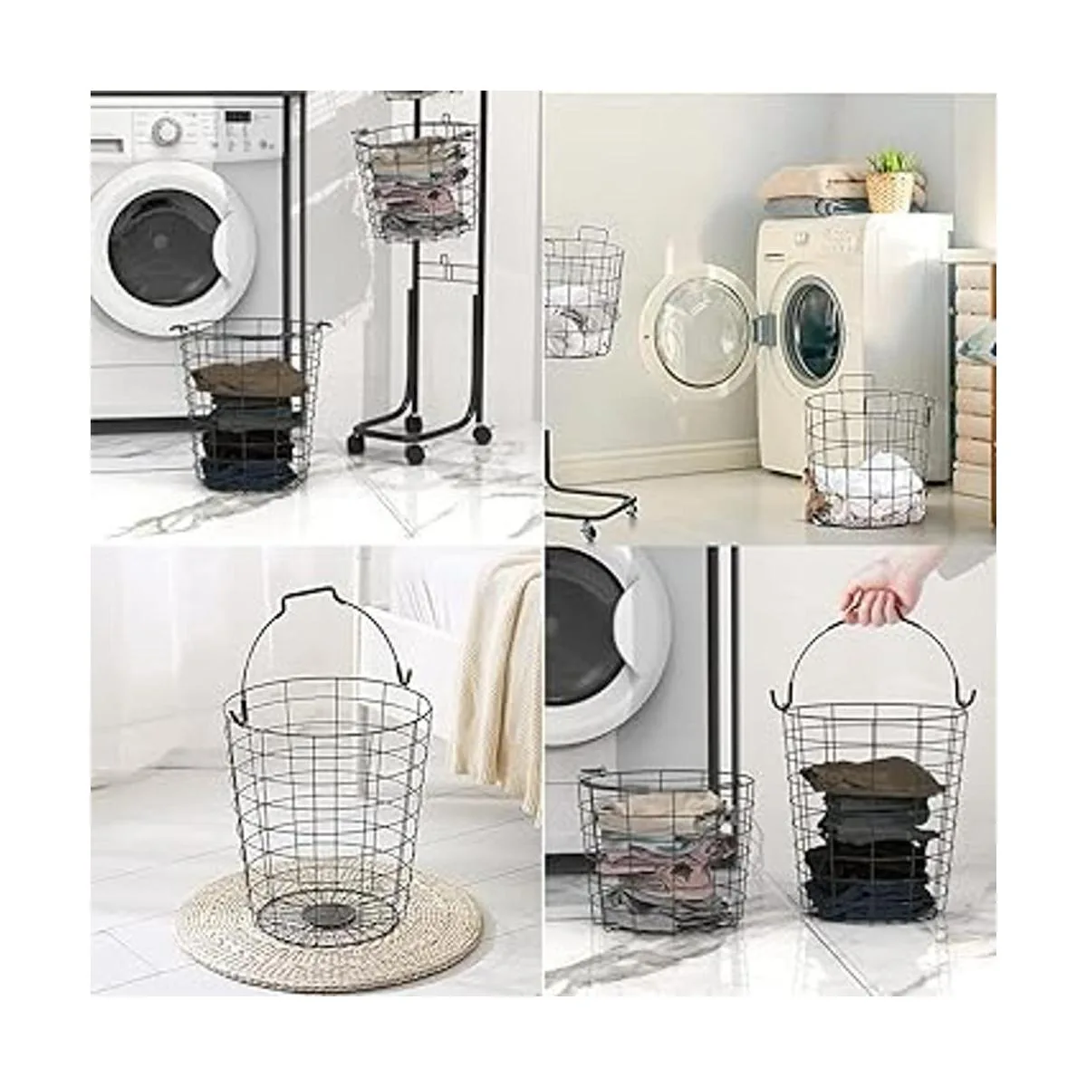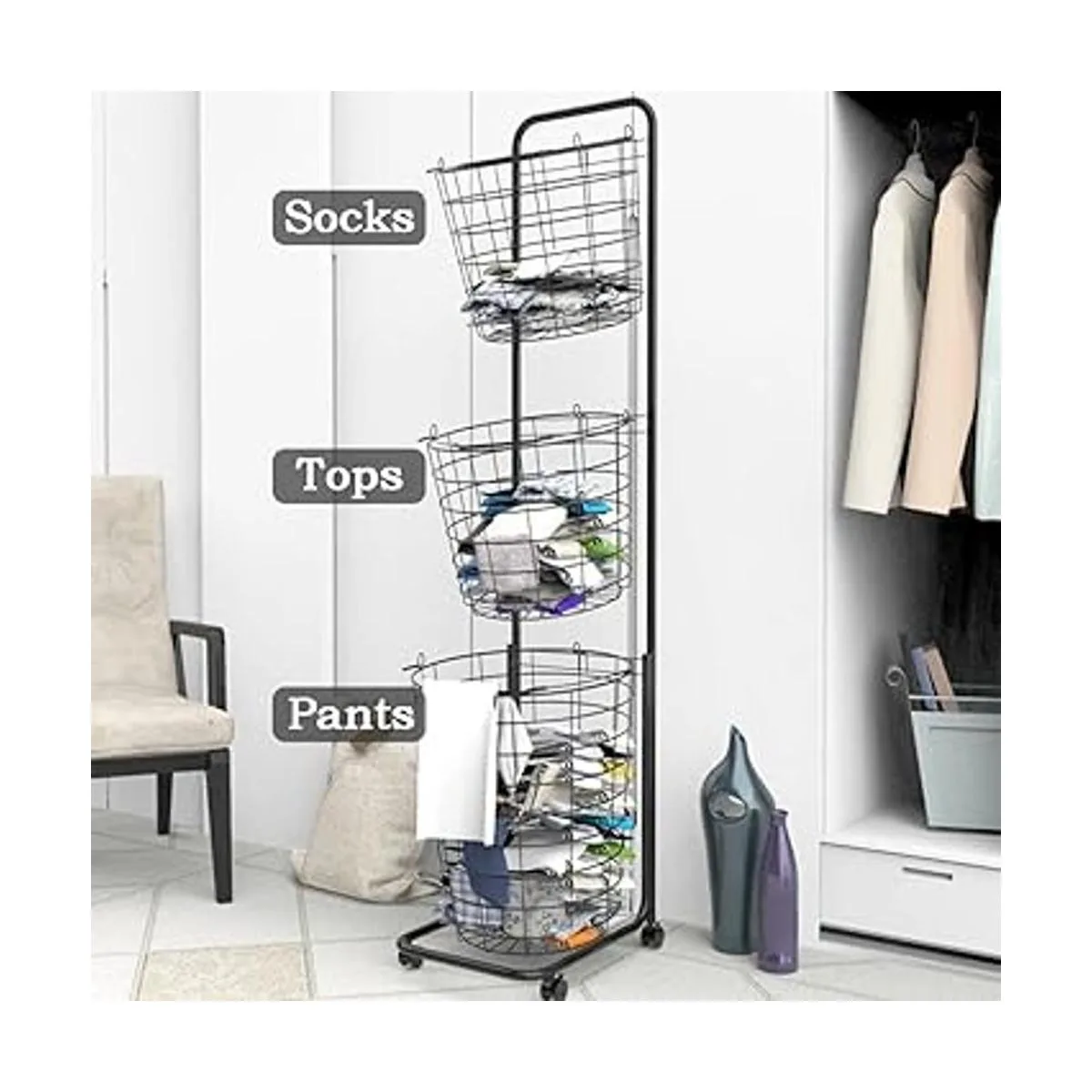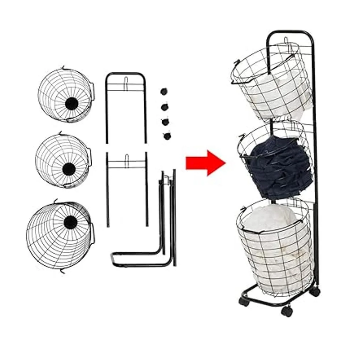 uyoyous Cesta de lavandería de 3 niveles con ruedas bloqueables, cesta de lavandería de alambre con asa, cesta de almacenamiento de ropa sucia con ruedas, para organizar la ropa, color negro