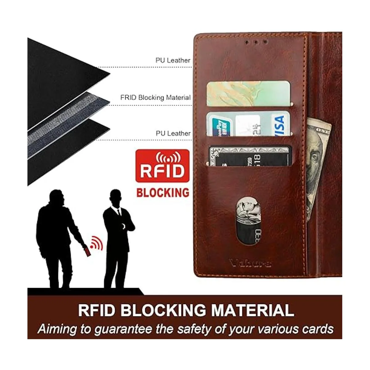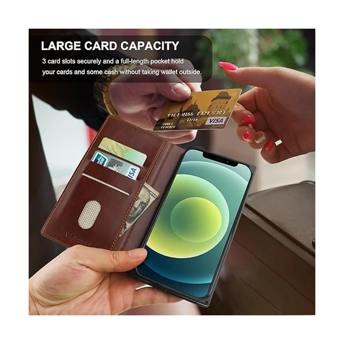 Vaburs Funda tipo cartera compatible con iPhone 1212 Pro con tarjetero, libro con bloqueo RFID, piel sintética, ranura para tarjetas, magnética, a prueba de golpes, funda de soporte de 6.1 pulgadas color marrón