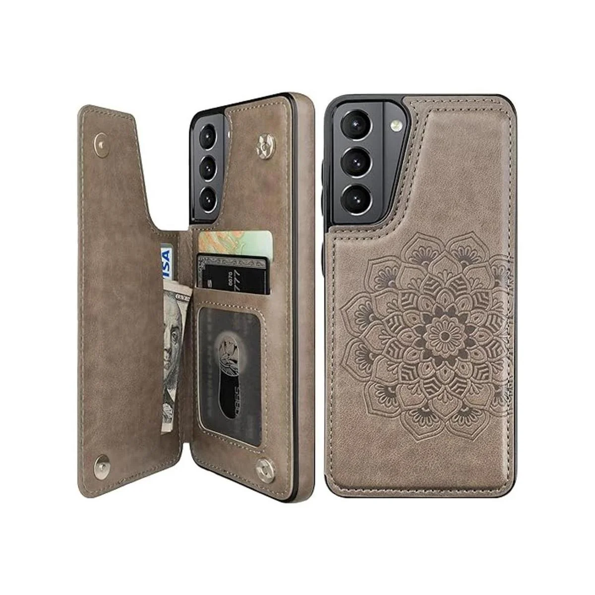 Vaburs Funda tipo cartera para Galaxy S21 Plus con tarjetero, diseño de mandala en relieve, piel sintética, doble cierre magnético, con botones magnéticos, color gris
