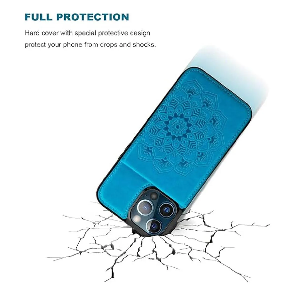 Vaburs Funda tipo cartera para iPhone 13 Pro, funda con soporte para tarjeta de crédito, mandala en relieve, diseño floral, piel sintética, cierre magnético, a prueba de golpes, funda protectora con tapa de 6.1 pulgadas azul