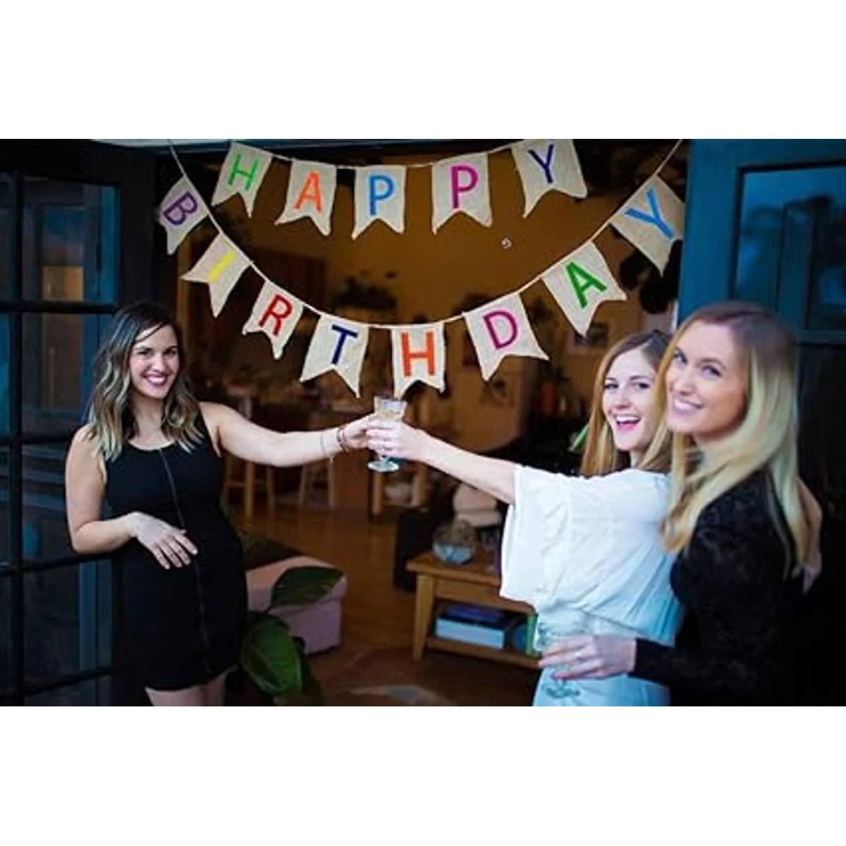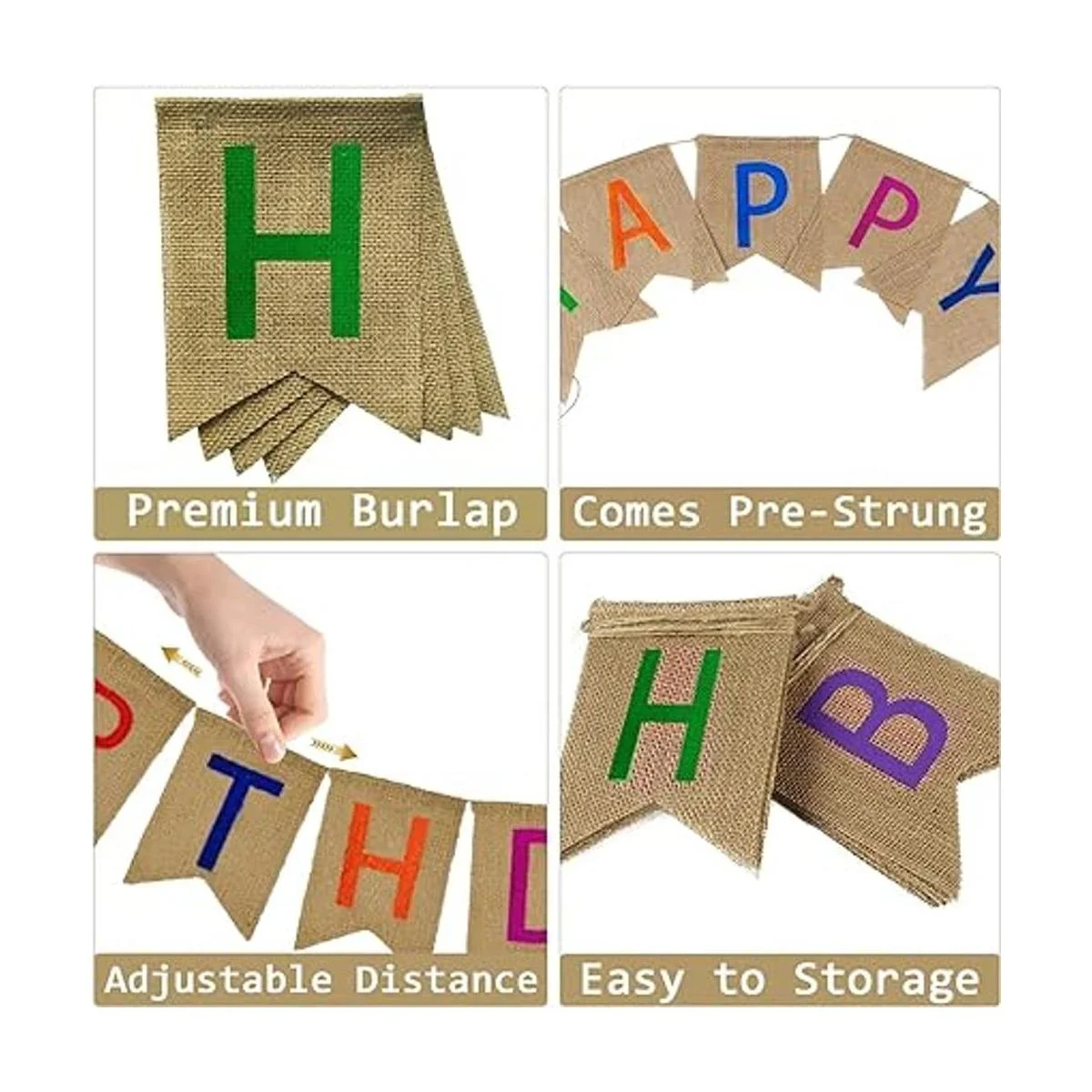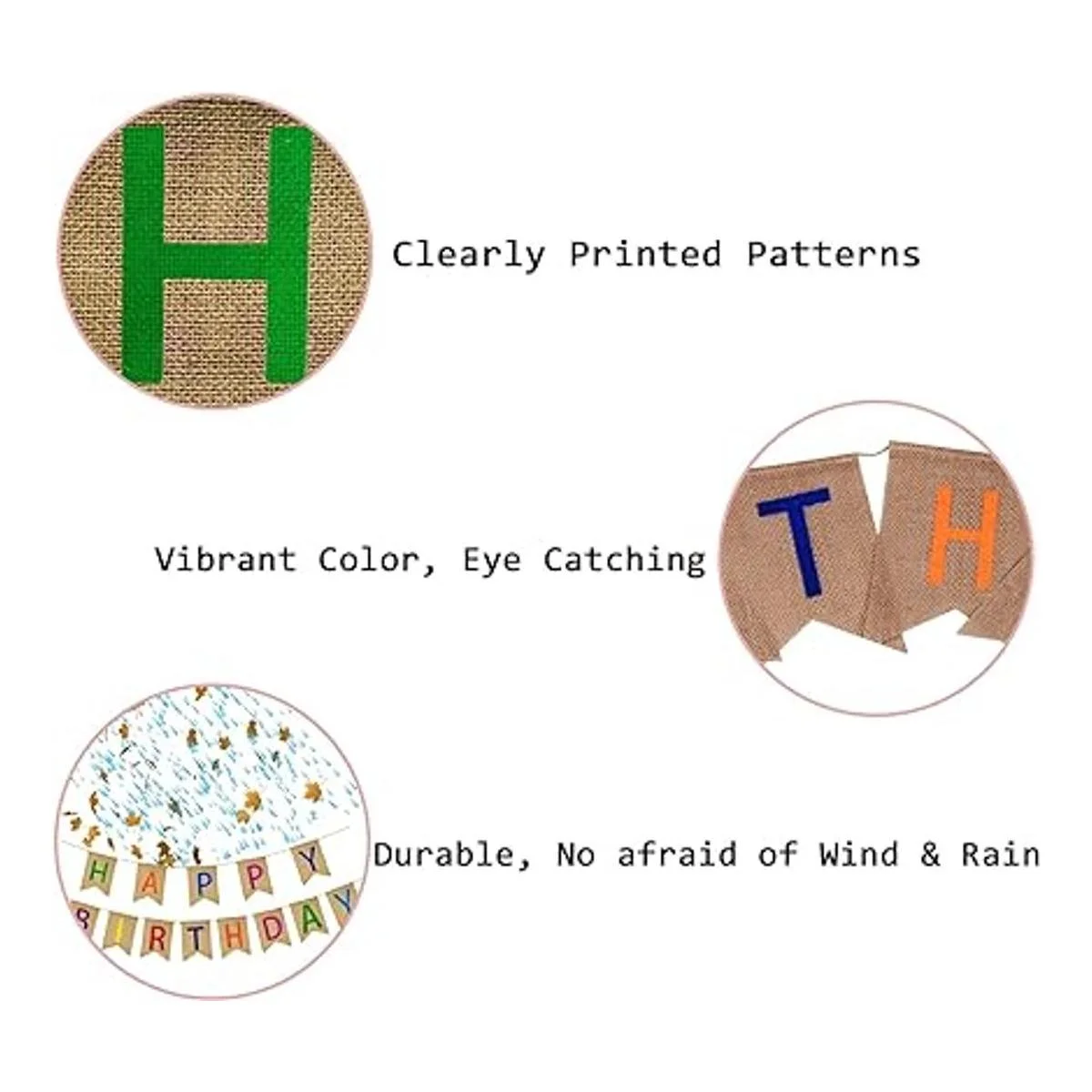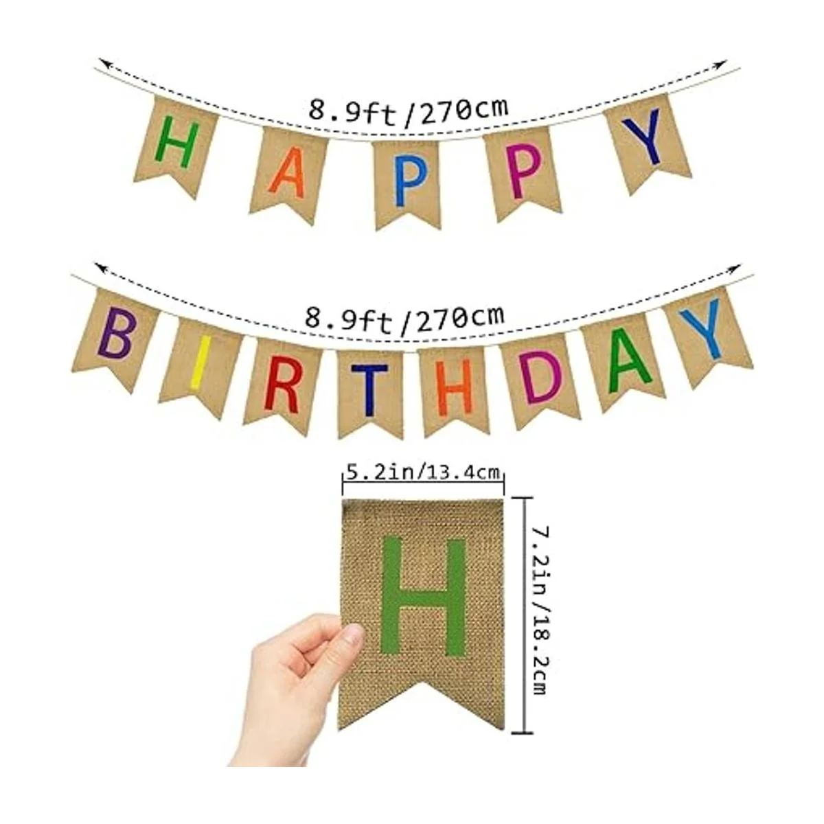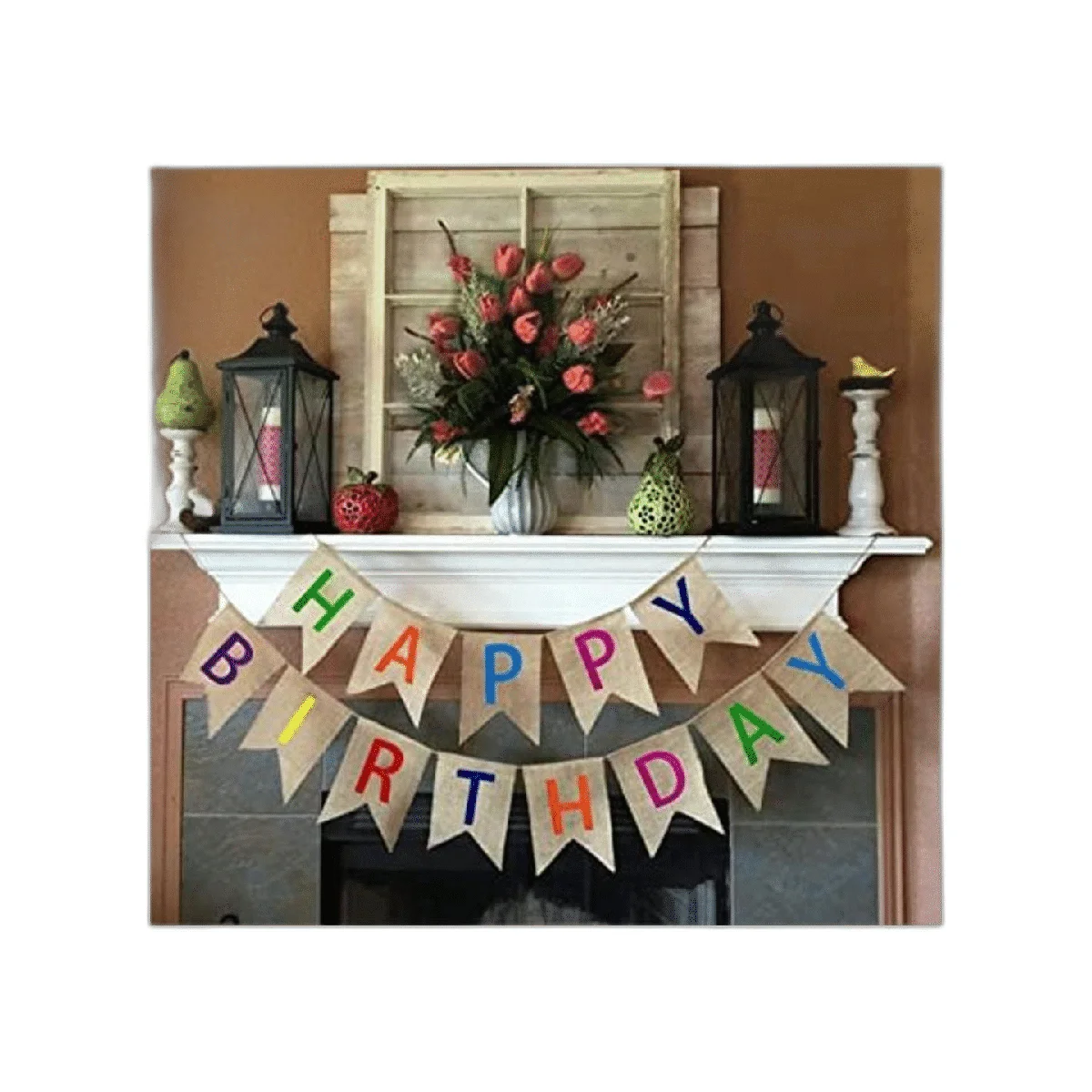Vagski Bandera de arpillera de feliz cumpleaños, banderas coloridas para decoración de fiesta de cumpleaños, letrero rústico de cumpleaños VAG041