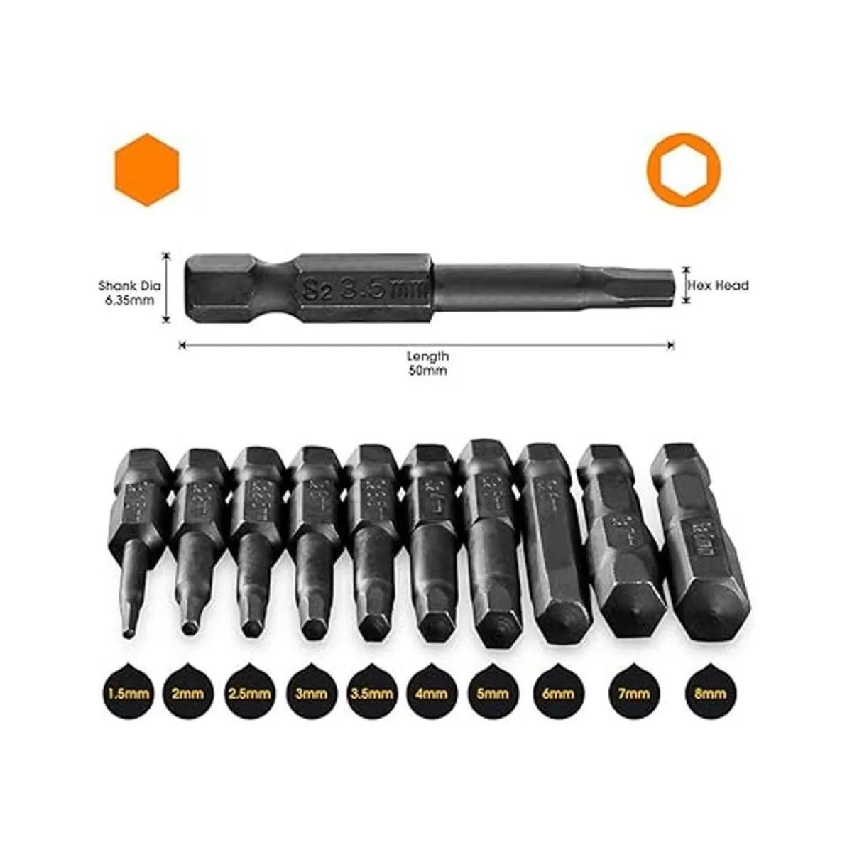 VAKOGAL S2 Juego de 10 brocas de cabeza hexagonal Allen, juego de destornilladores de cabeza hexagonal de acero con magnético, métrico de 0.0590.315 in, vástago hexagonal de 14 de pulgada, longitud de 2 pulgadas, para llave de mano y taladros eléctricos