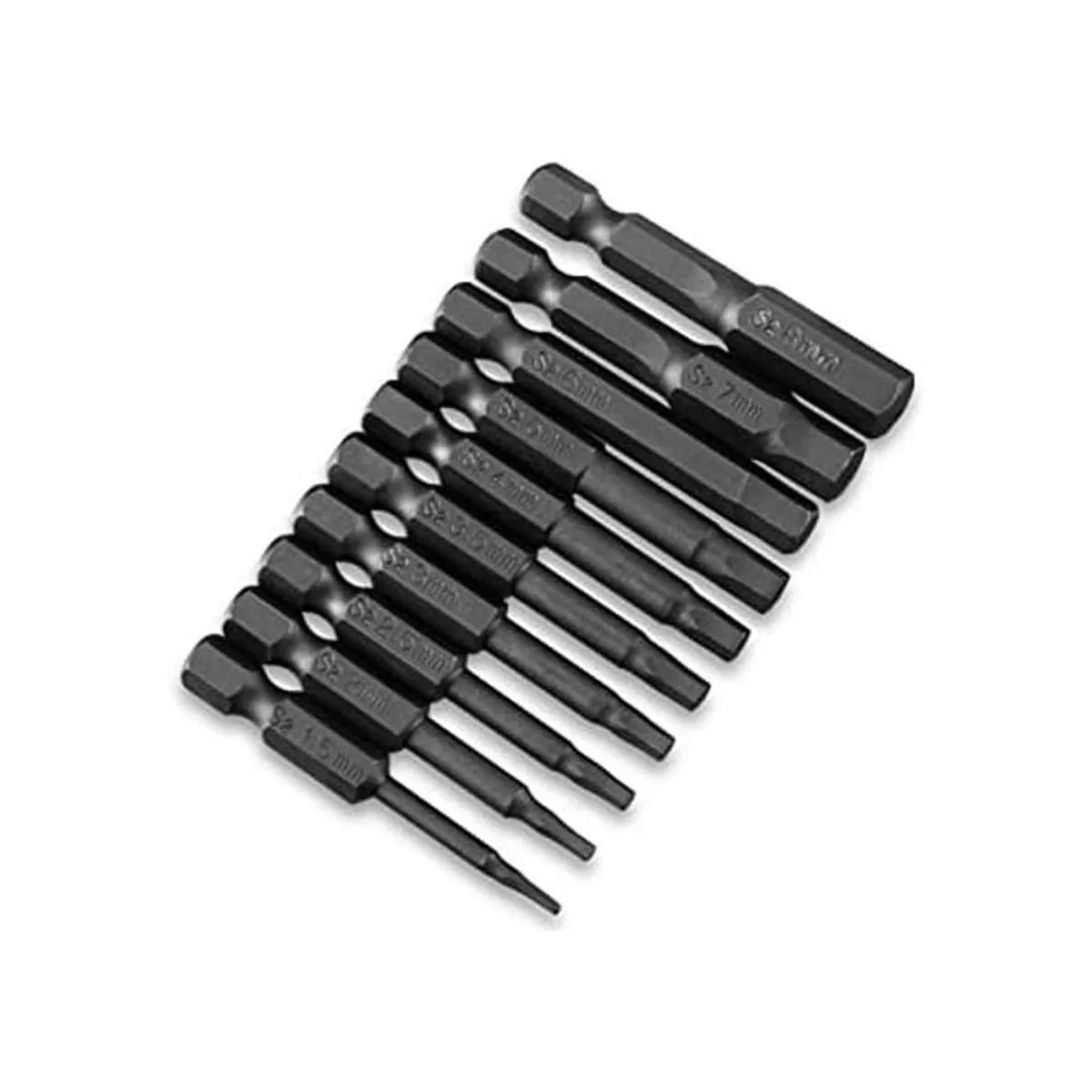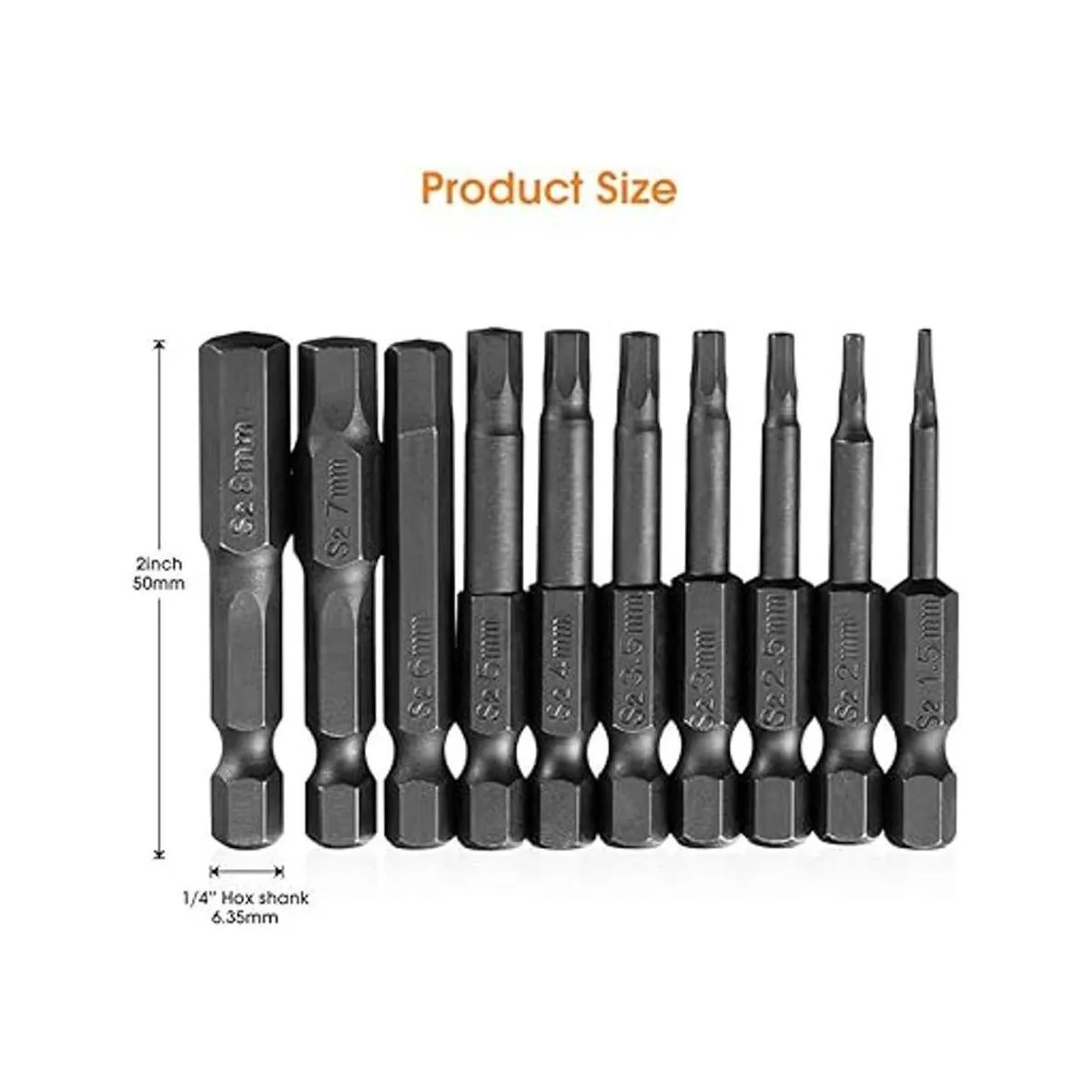 Alta calidad: juego de llaves hexagonales hecho de acero S2 sólido de alta calidad tratado térmicamente con un acabado resistente al óxido. Tienen una dureza y torsión adecuadas que hacen que las brocas no se rompan ni se desgasten fácilmente.