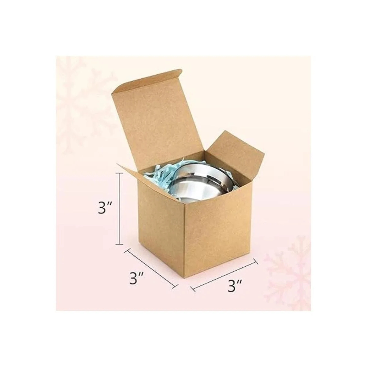 Cajas de regalo de papel de 3 x 3 x 3 pulgadas: nuestras cajas de regalo marrón reciclables resistentes se ven bien con un acabado rústico. Las cajas son del tamaño y forma perfectos para cupcakes, pequeños artículos de regalo, joyas y un vaso de chupito, para usar como cajas de pasteles, cajas de dulces, cajas de regalo regalos de boda y regalos de fiesta o cajas de golosinas Solo cajas, accesorios no incluidos.