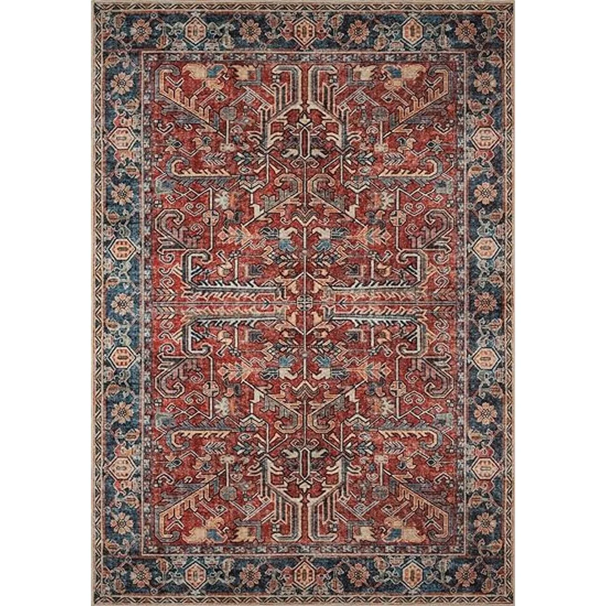 Valenrug Tapete de área oriental lavable a máquina, 4 x 6 pies, de granja persa envejecida, color rojoazul