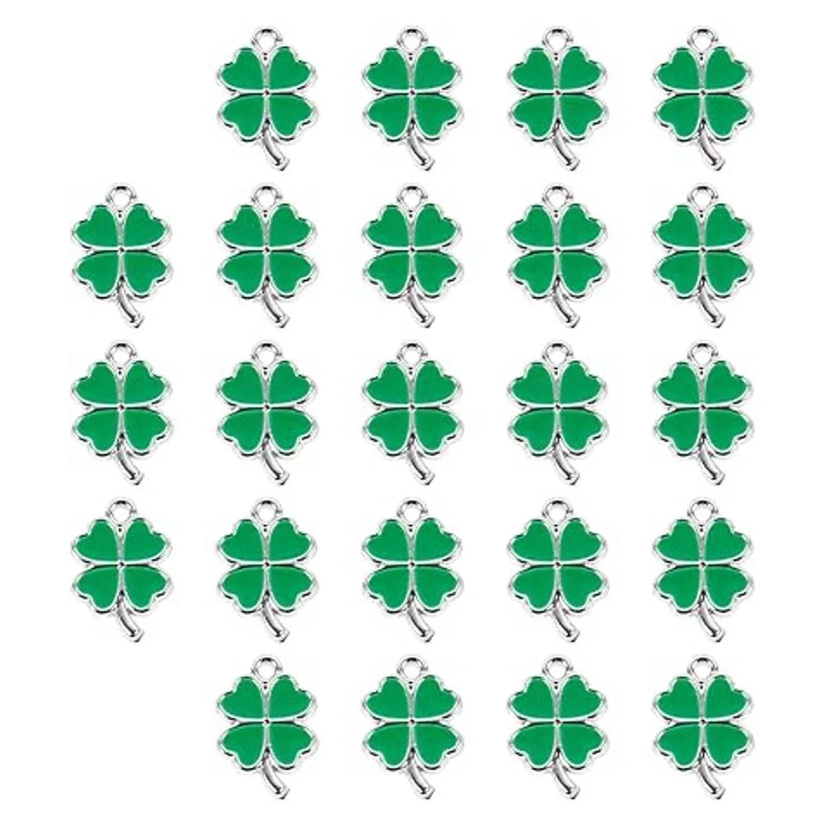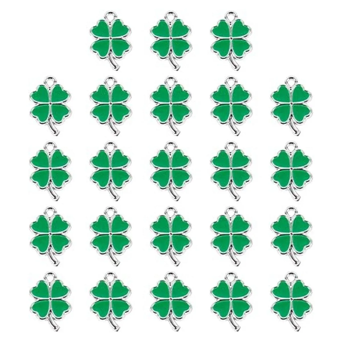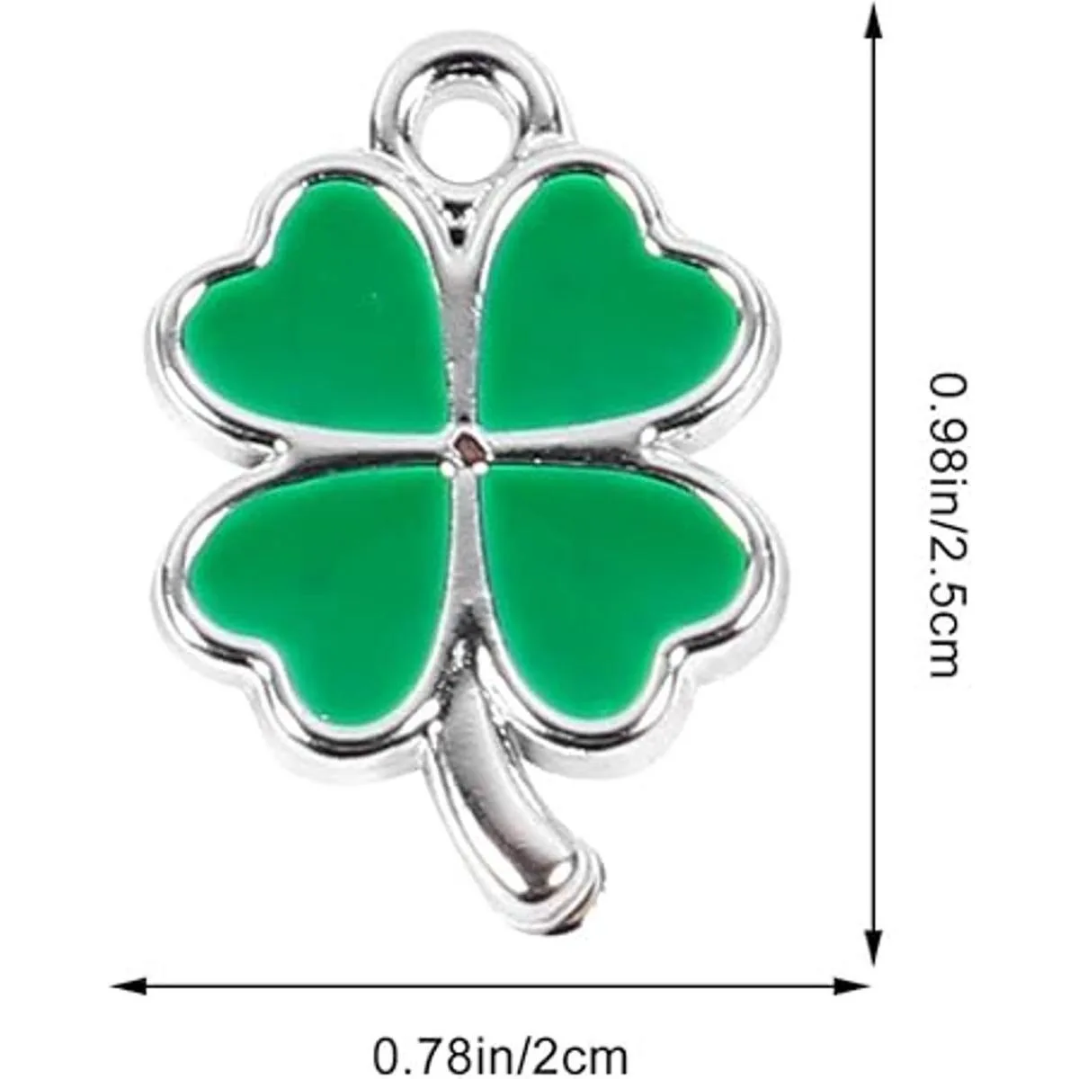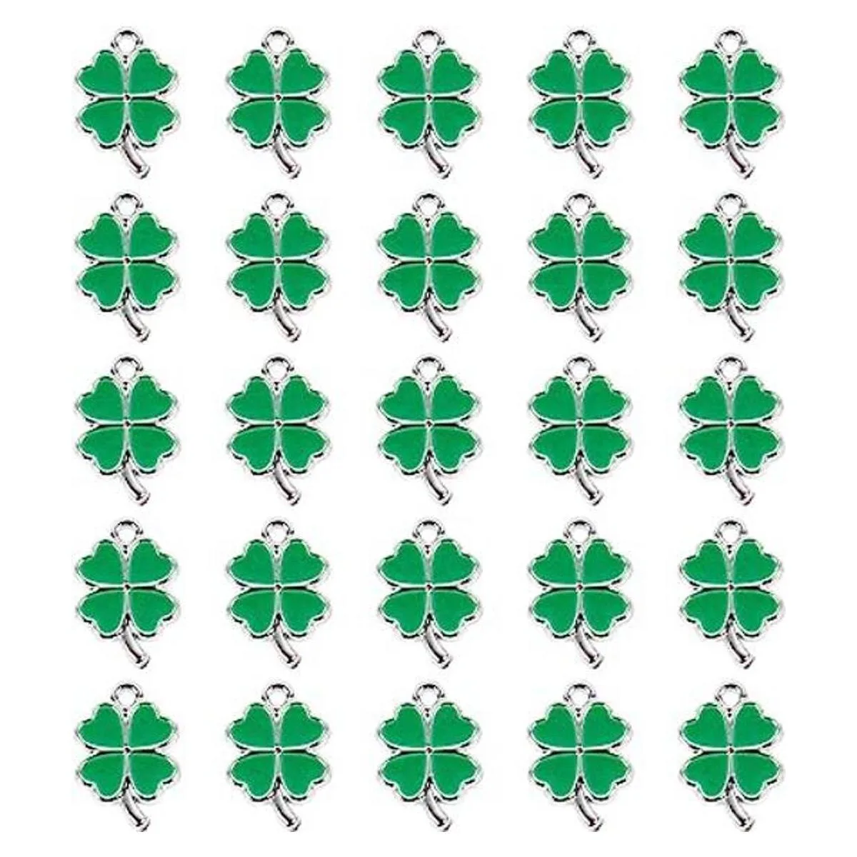 ValiCLUD 25 colgantes de trébol de cuatro hojas colgantes de trébol esmalte de trébol de perlas de trébol para hacer joyas colgantes colgantes para bricolaje manualidades, pendientes, pulsera de tobillo verde