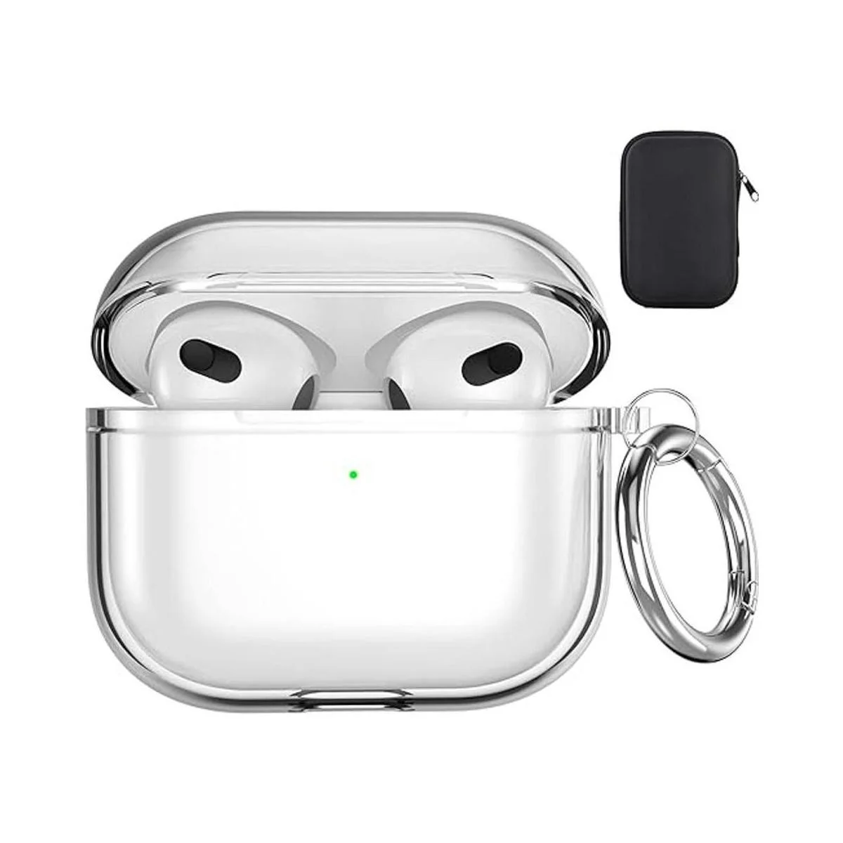 Cristal y ligero: el aspecto transparente mantiene la belleza original de la funda de carga Apple AirPods de 3 generación. Diseño compacto y ligero con llavero que hace que sea fácil llevar tus Airpods a cualquier lugar.