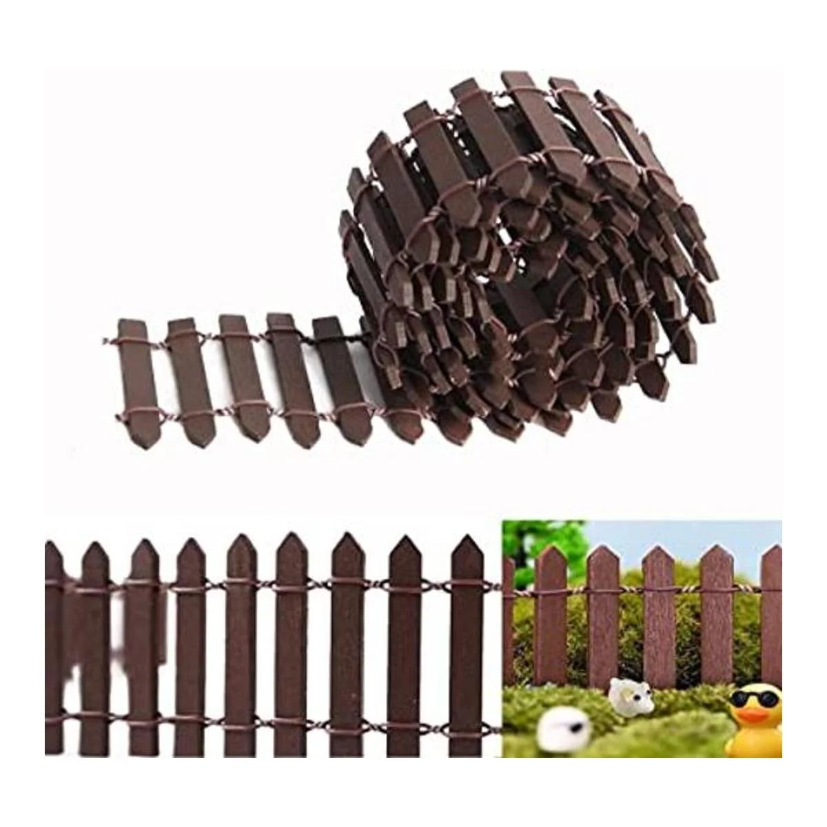 Valla decorativa de jardín en miniatura para casa de muñecas para proyectos de manualidades de diorama, 40 pulgadas de largo x 2 unidades (2 unidades de marrón)
