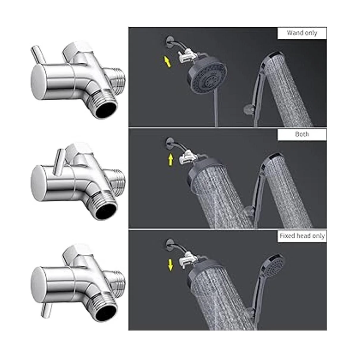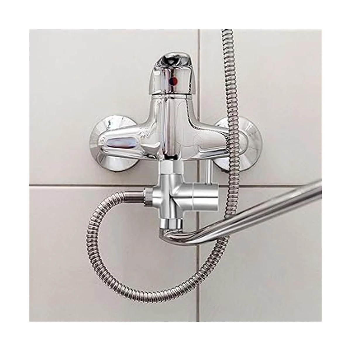 Válvula desviadora de ducha de 3 vías: este desviador de brazo de ducha es una válvula de 3 vías, que se fija al brazo de ducha, convierte el agua de la ducha de mano y fija el cabezal de ducha cómodamente. Puede controlar la descarga de agua desde ambas salidas simultáneamente, pero el flujo de agua se reduce a la mitad en cada salida y depende de tu presión de agua.