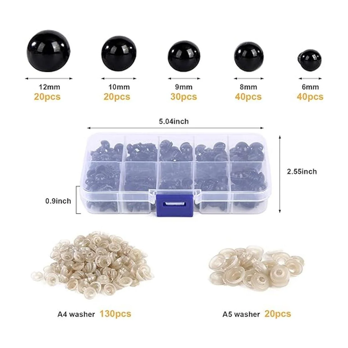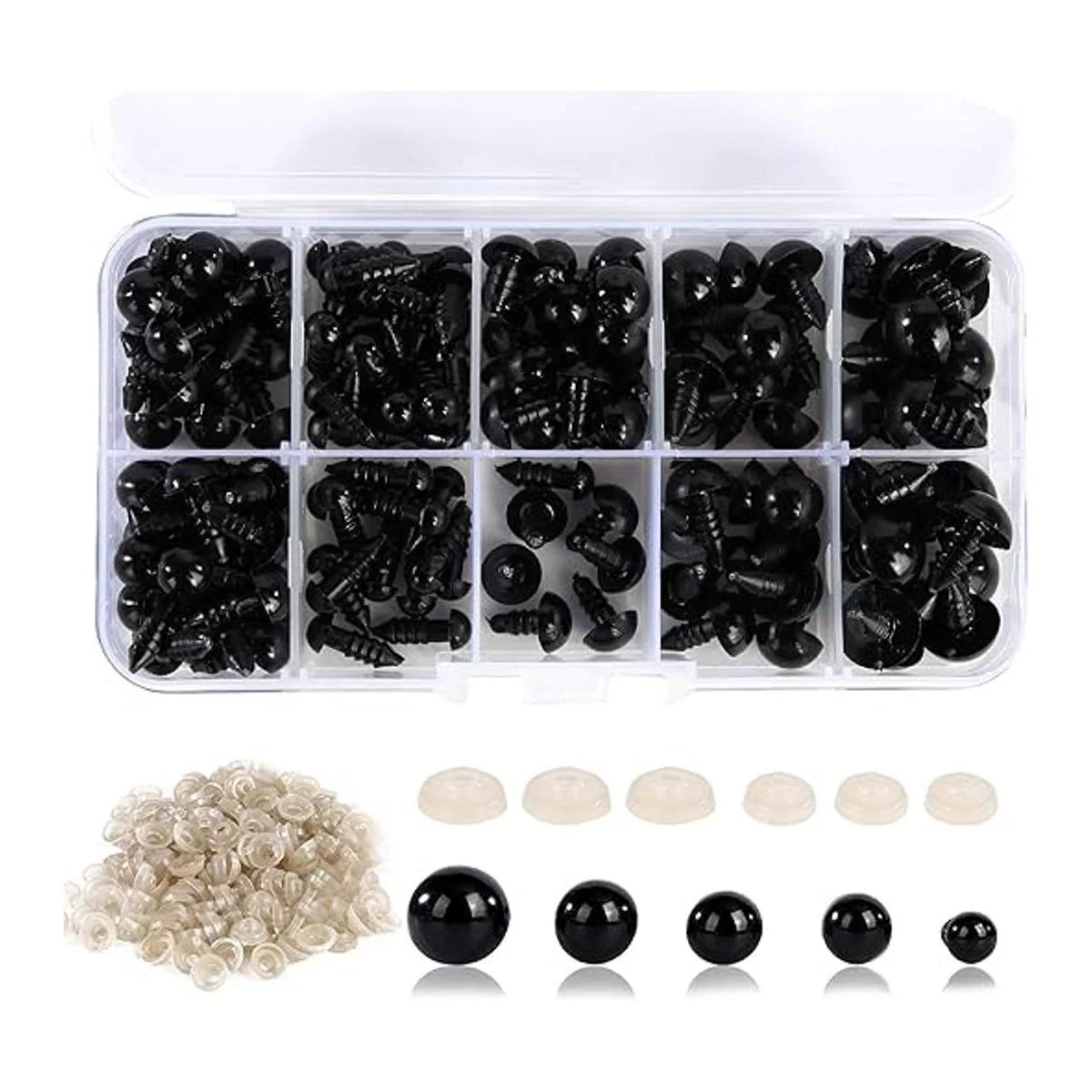 Vanblue Ojos de seguridad, 300 piezas de ojos de seguridad de plástico de 6 a 0.472 in, ojos de manualidades con arandelas para proyectos de ganchillo de animales de peluche Amigurumi, oso de peluche, juguetes de marioneta, fabricación de manualidades