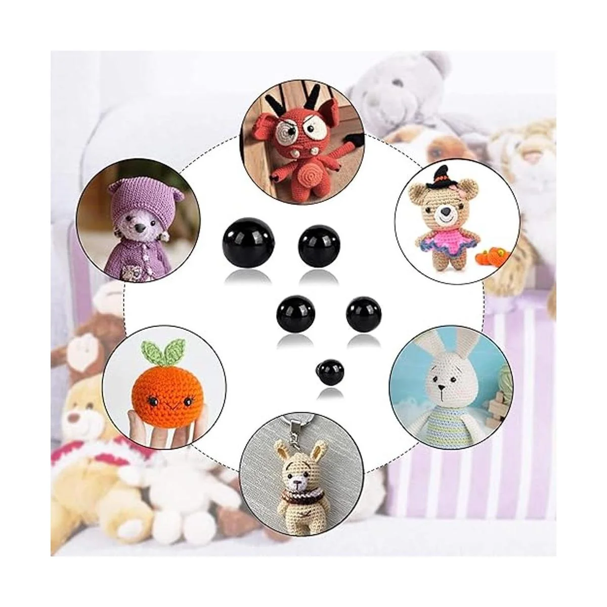 Aplicación: inspira tu creatividad, los ojos de seguridad son muy adecuados para muñecas hechas a mano y proyectos amigurumi y manualidades de juguetes, perfectos para todo tipo de criaturas de peluche, como marionetas de peluche, osos de peluche, perros, animales de peluche, etc. Además, también es muy adecuado para muñecas con elementos festivos, como Navidad, Año Nuevo y Pascua.