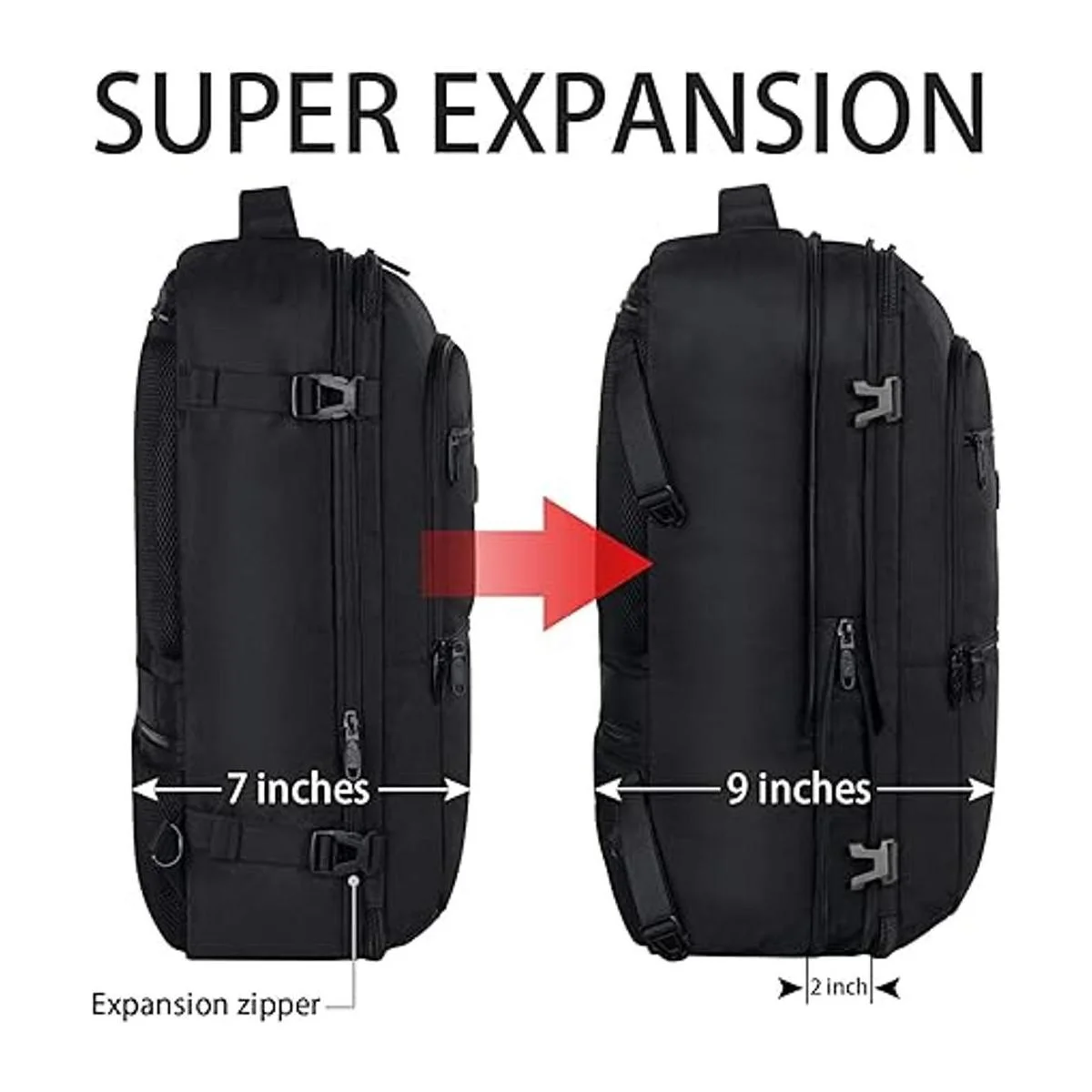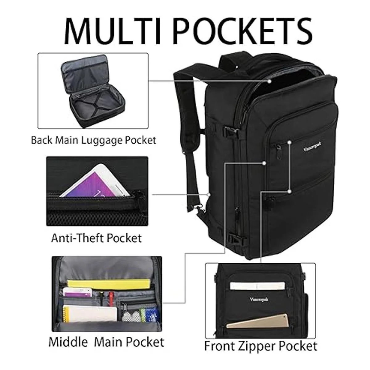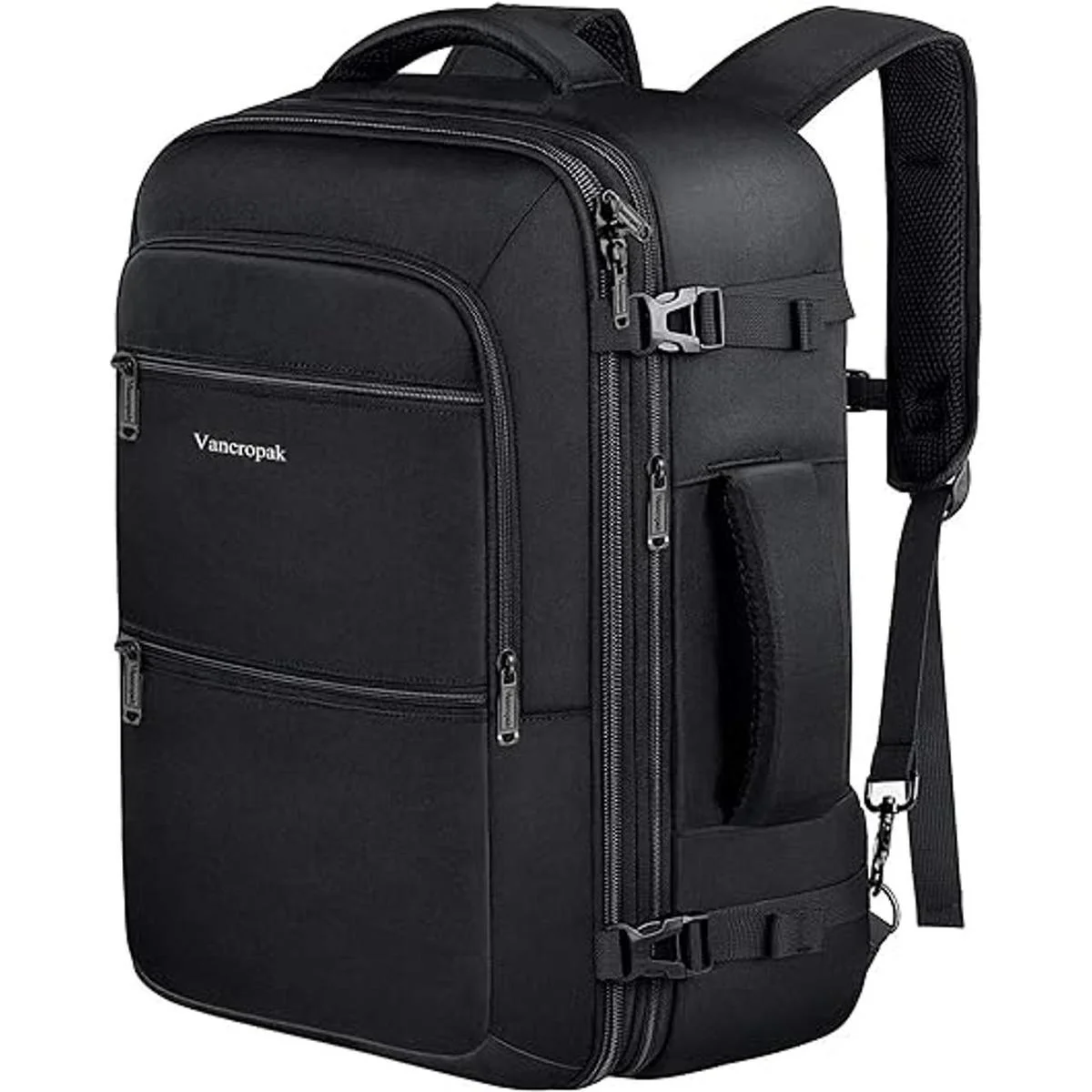 Vancropak Mochila de viaje de 40 litros aprobada por vuelo para hombres y mujeres, mochila de equipaje grande expandible resistente al agua, ligera, bolsa de fin de semana de negocios, color negro