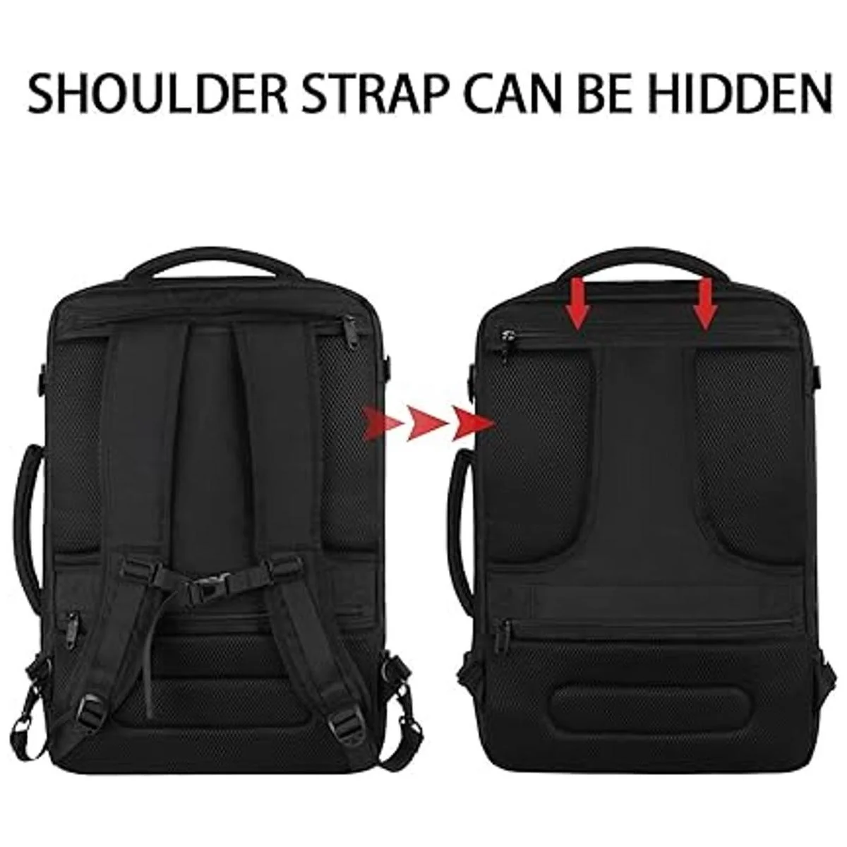 Diseño práctico: esta mochila de viaje está diseñada con correas acolchadas ocultas que se pueden ocultar en el panel trasero con cremallera cuando no se utiliza. Dos asas acolchadas en la parte superior y el lateral están diseñadas para levantar la mochila desde múltiples ángulos, te proporcionan una experiencia de transporte más flexible como llevar como una maleta o una mochila. Una correa de equipaje en la parte posterior está diseñada para caber en el asa del equipaje, para un transporte más fácil en viajes internacionales o de vuelta a la escuela