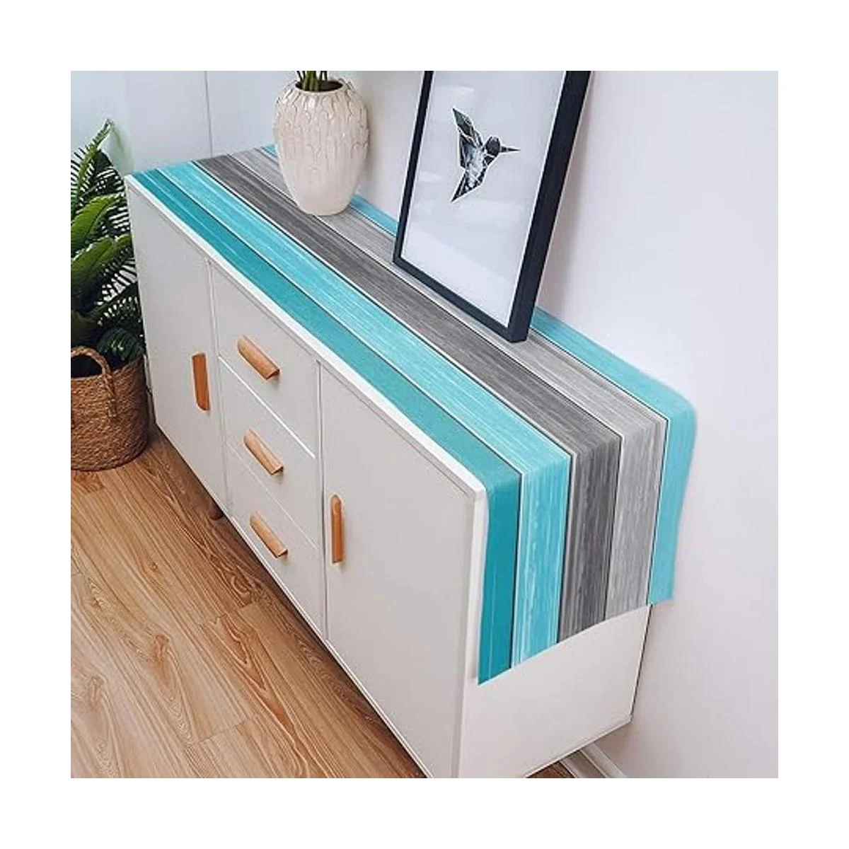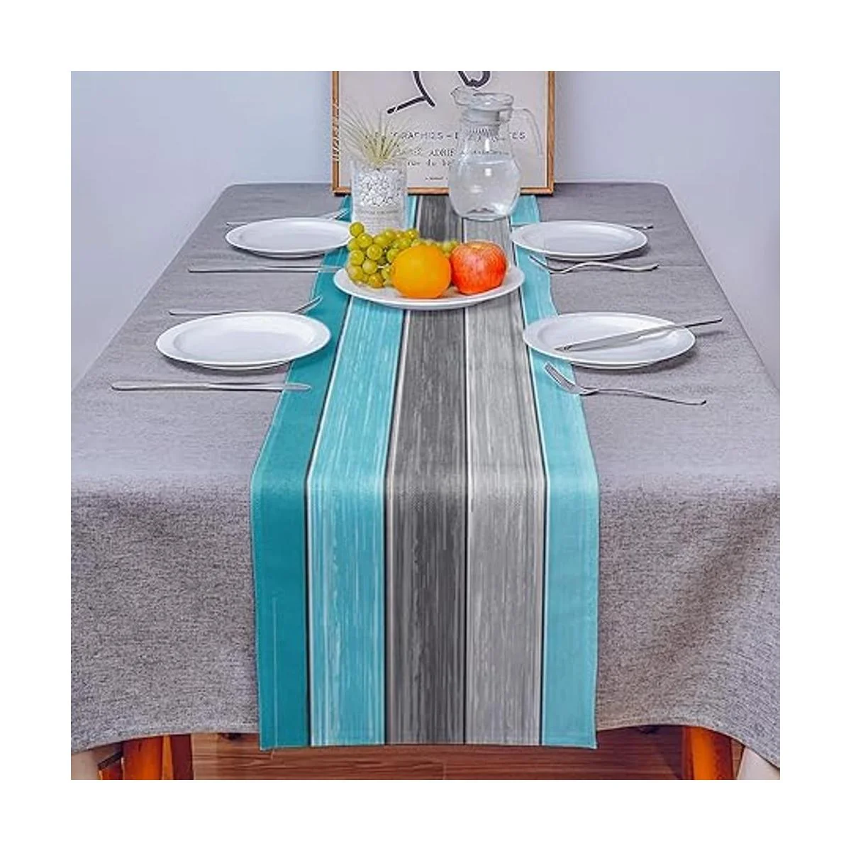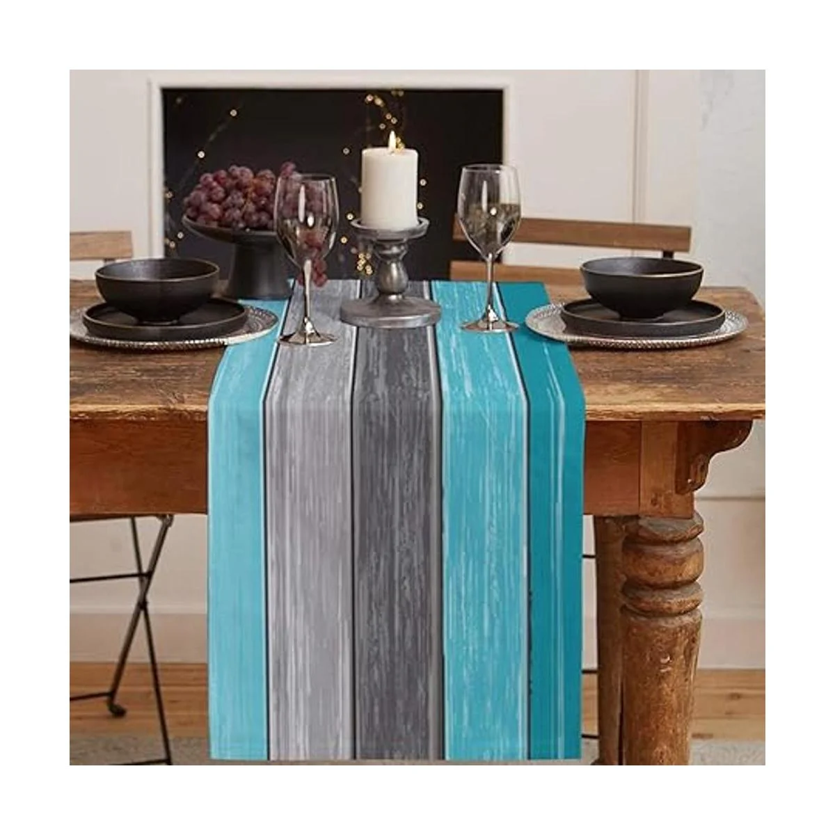 Vandarllin Camino de mesa de lino de algodón rústico retro, textura de madera de granero degradado, azul aguamarina, gris, antideslizante, decoración rectangular para cocina, hogar, comedor, vacaciones, 70 pulgadas de largo