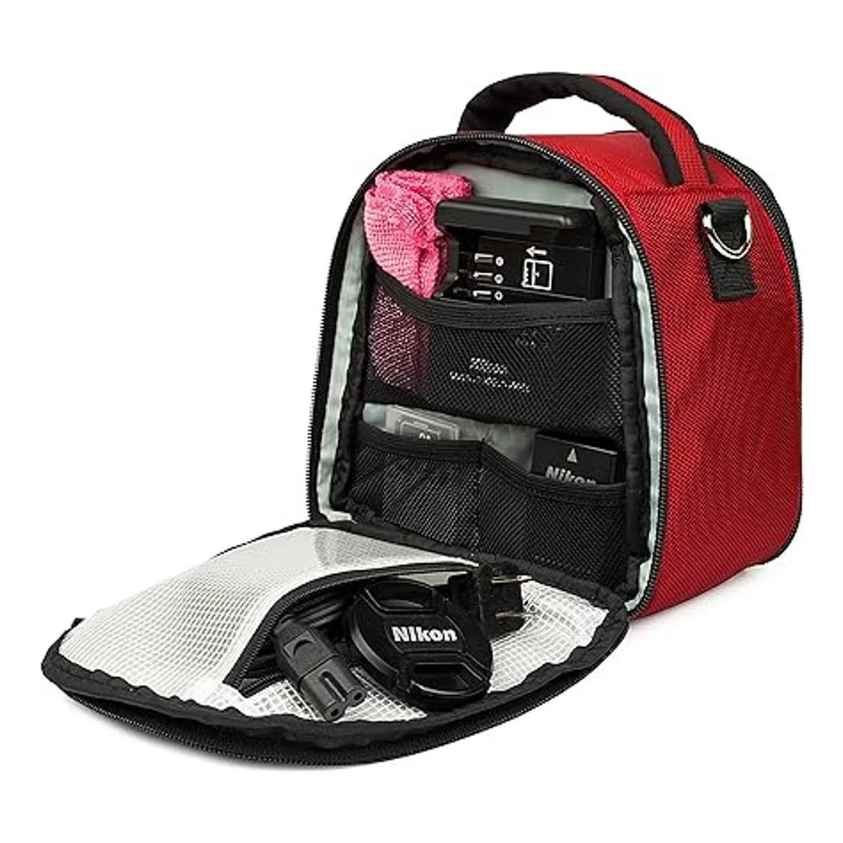 El Vangoddy Laurel hace que el compañero de viaje perfecto, no importa donde sale o qué aventuras Lay Por Delante. La bolsa cuenta con un diseño elegante y funcional con nylon duradero Tapestry y interior acolchado de neopreno. Su apertura de doble cierre proporciona un rápido y fácil acceso a su cámara y accesorios en momento de notificación para que nunca te pierdas otro imagen perfecta momentos. El compartimento principal está diseñado para adaptarse a su cámara SLR o sistema avanzado junto con la lente Attached. El bolsillo trasero puede acomodar una amplia gama de accesorios como un cargador, baterías, tarjetas de memoria, cables de datos, y mucho más. El mini Laurel ofrece 3 soluciones de un transporte cómodo. La primera le permite llevar la bolsa con la correa de hombro a juego. La correa de hombro tiene neopreno acolchado para mayor comodidad y se puede ajustar a cualquiera de tamaño no importa cómo petite o grande. La segunda opción le permite adjuntar la bolsa a su cinturón, Bolsa de viaje o mochila por utilizando Carbineer extraíble. También puede utilizar la parte superior asa de transporte para un fácil, simple solución de transporte.