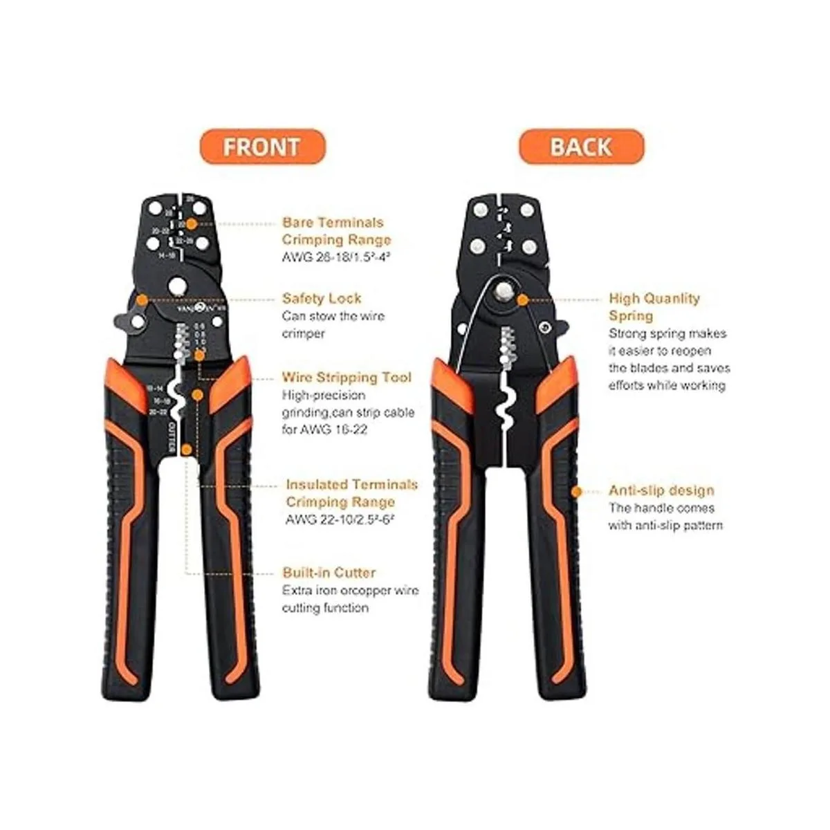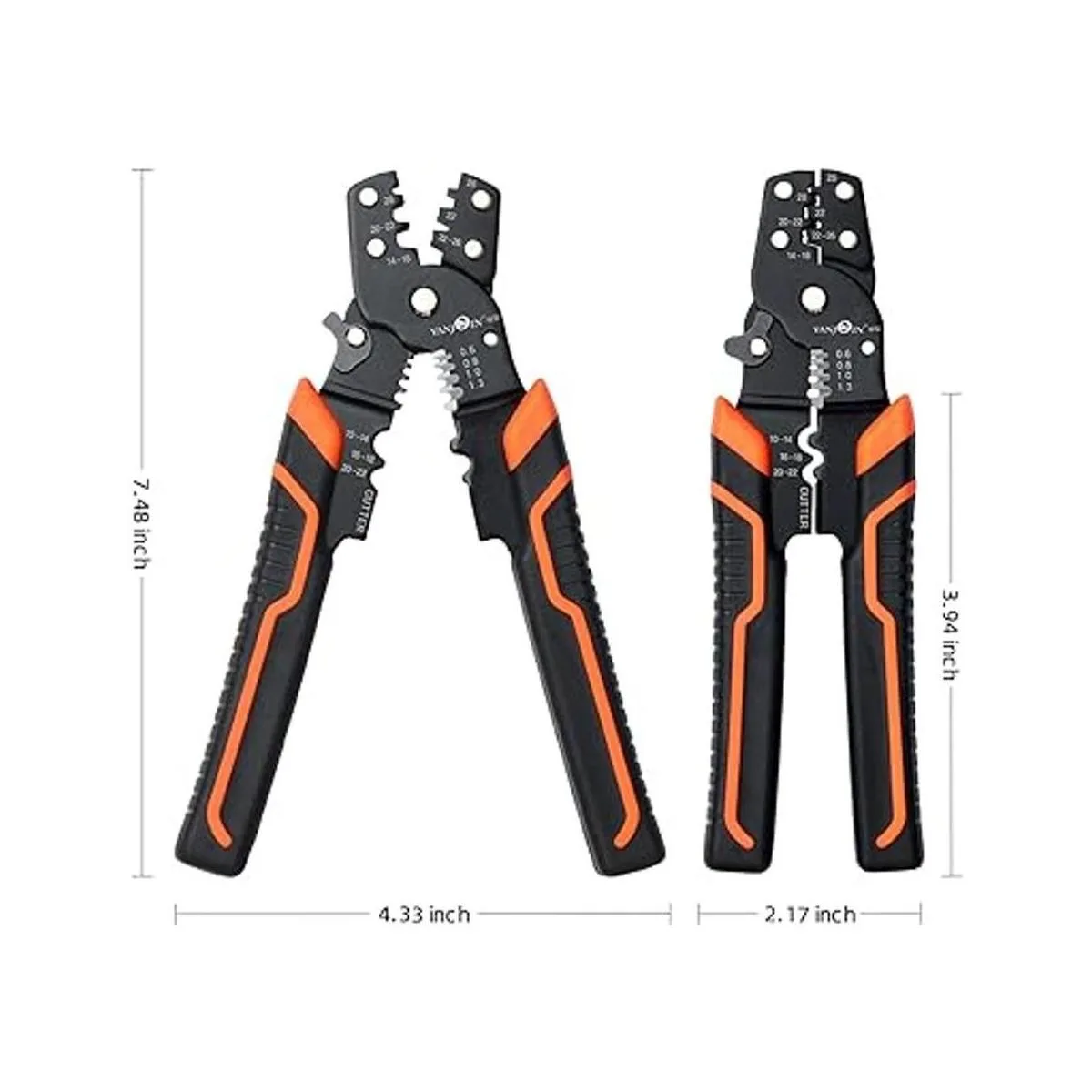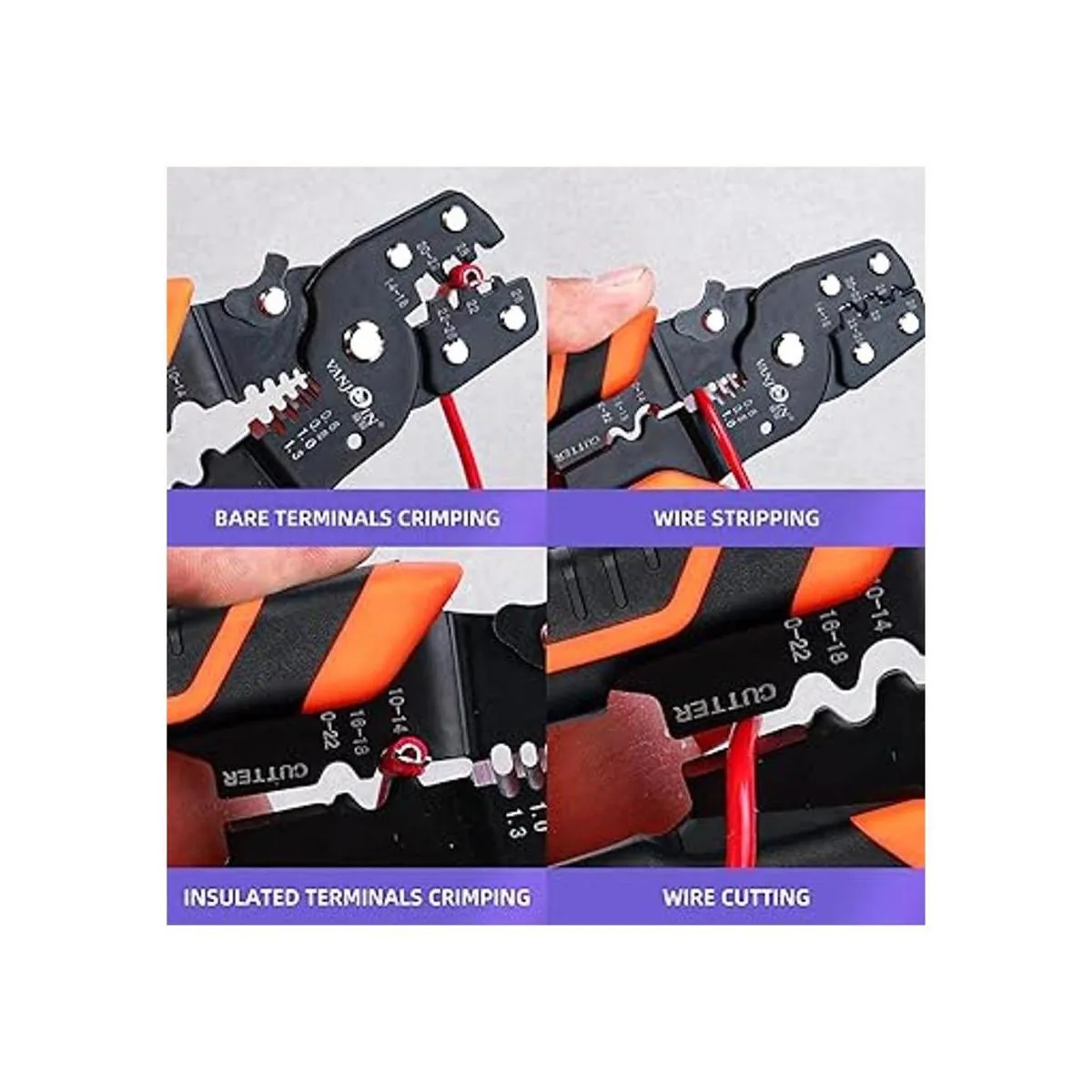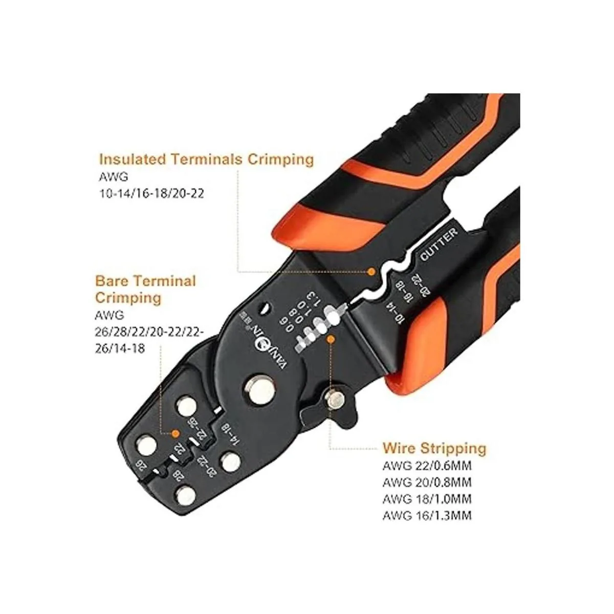VANJOIN Herramienta de crimpado de pelacables, cortador de crimpadora de pelacables de 7.5 pulgadas, herramienta de crimpado para conectoresterminales de alambre, pelacables para AWG 1622, herramienta de corte 4 en 1 de acero al manganeso