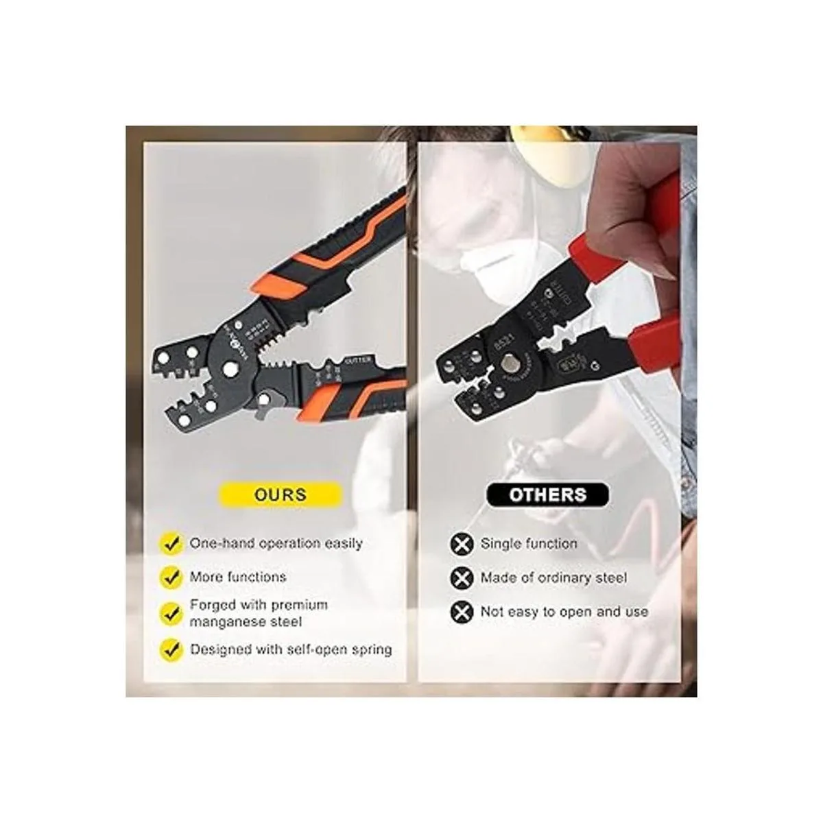 Herramienta de crimpado de pelado de alambre: la herramienta de crimpado de pelado de alambre está forjada con acero de manganeso 65 duradero y tiene un troquel de crimpado eficiente y de grado profesional para un crimpado sólido adecuado cada vez.