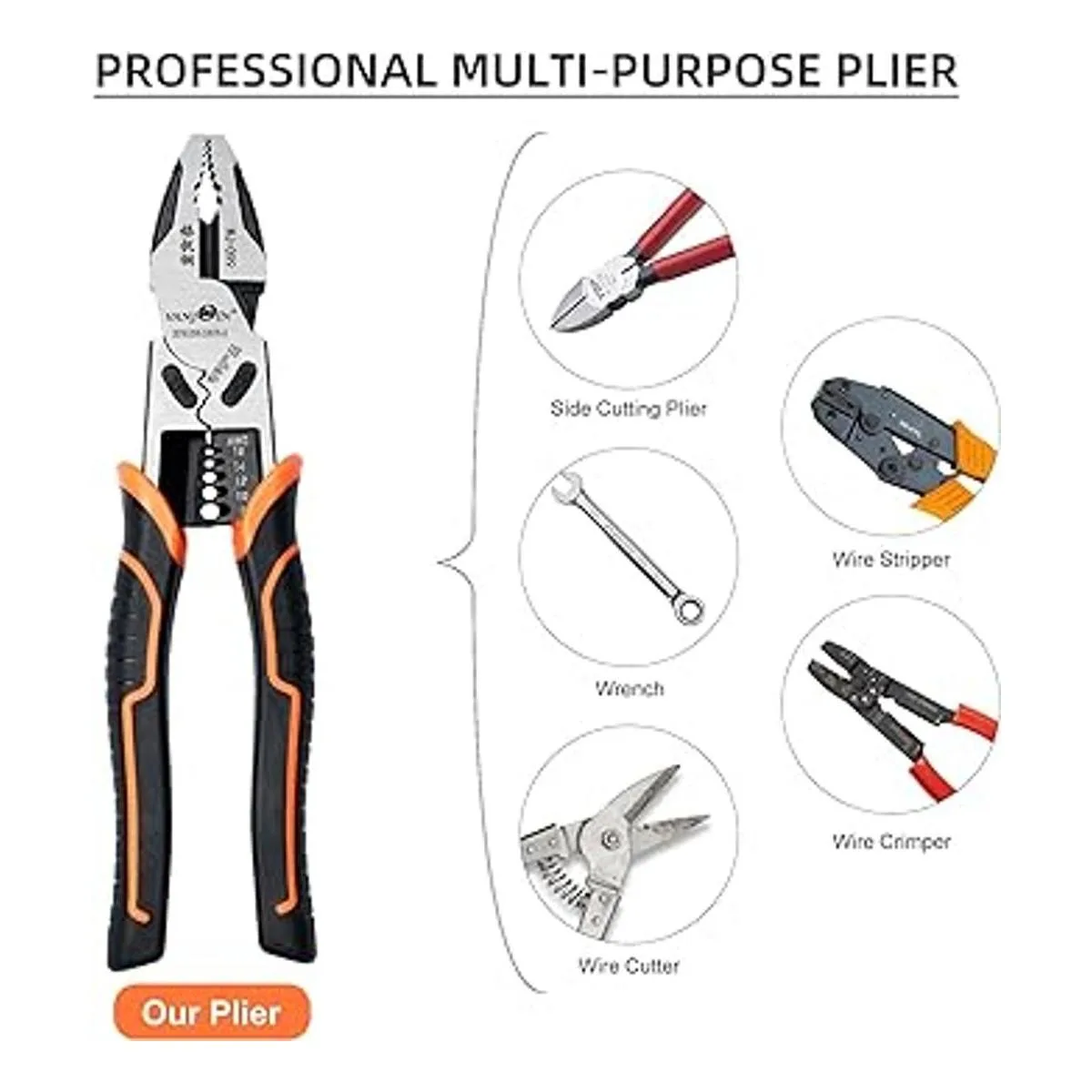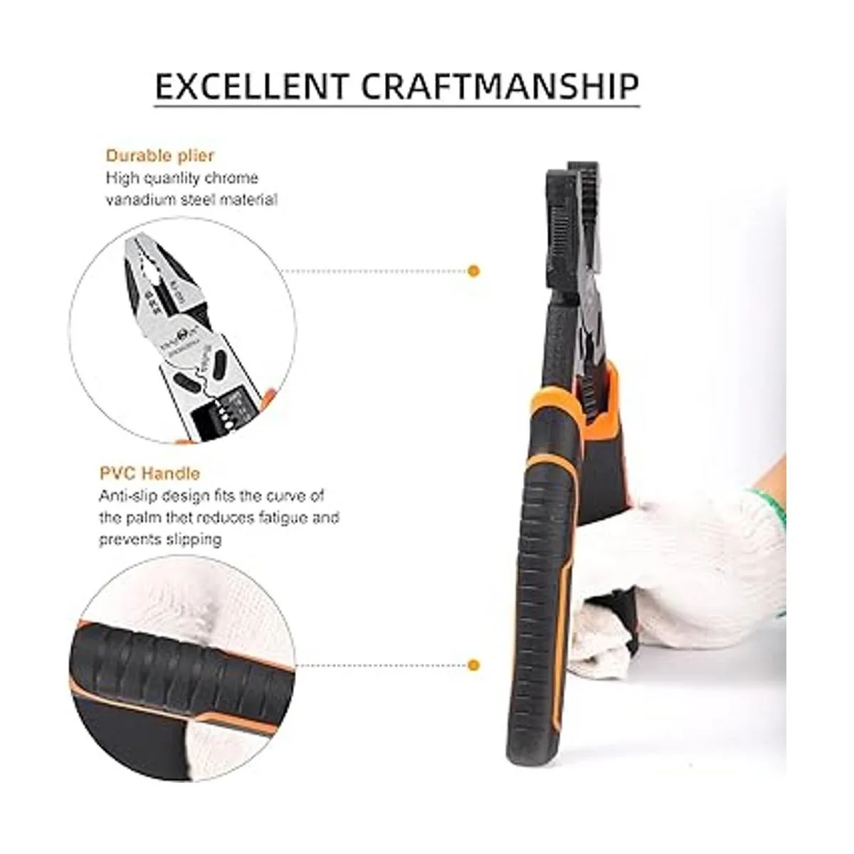 Material de alta calidad y artesanía: nuestros alicates multifuncionales están hechos de material de acero al cromo vanadio de alta calidad y resistencia térmica general, lo que hace que la dureza del alicate sea más alta y se puede utilizar durante mucho tiempo.