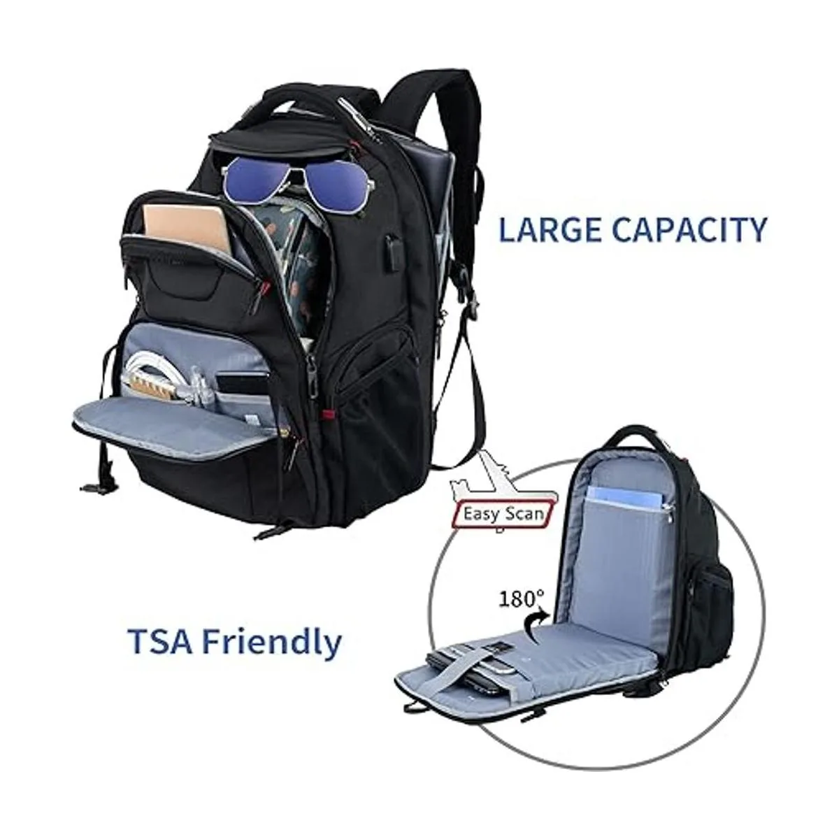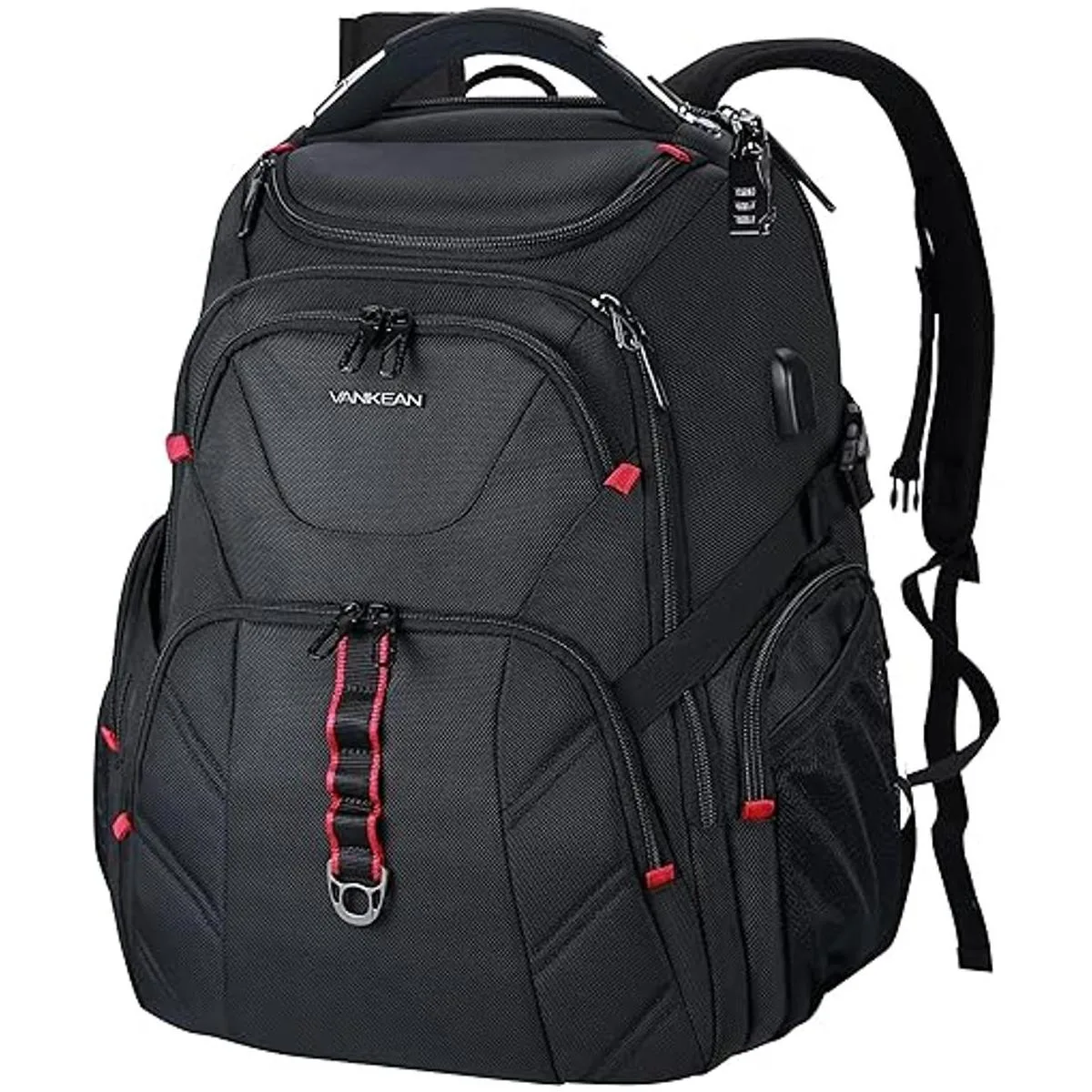 VANKEAN Mochila de viaje para laptop de 17.3 pulgadas, apta para TSA, resistente al agua, antirrobo, mochila extra grande con bolsillos RFID, mochilas universitarias con puerto USB para hombres, mujeres, escuela, negocios, bolsa de trabajo, color negro, Negro