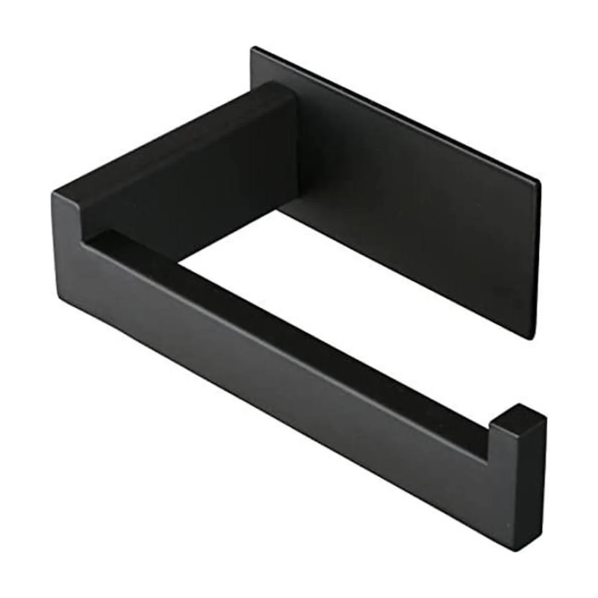 Vanloory Soporte para papel higiénico, soporte autoadhesivo de acero inoxidable a prueba de óxido, sin taladrar fácil de instalar, estante de papel higiénico adecuado para oficina, baño negro mate