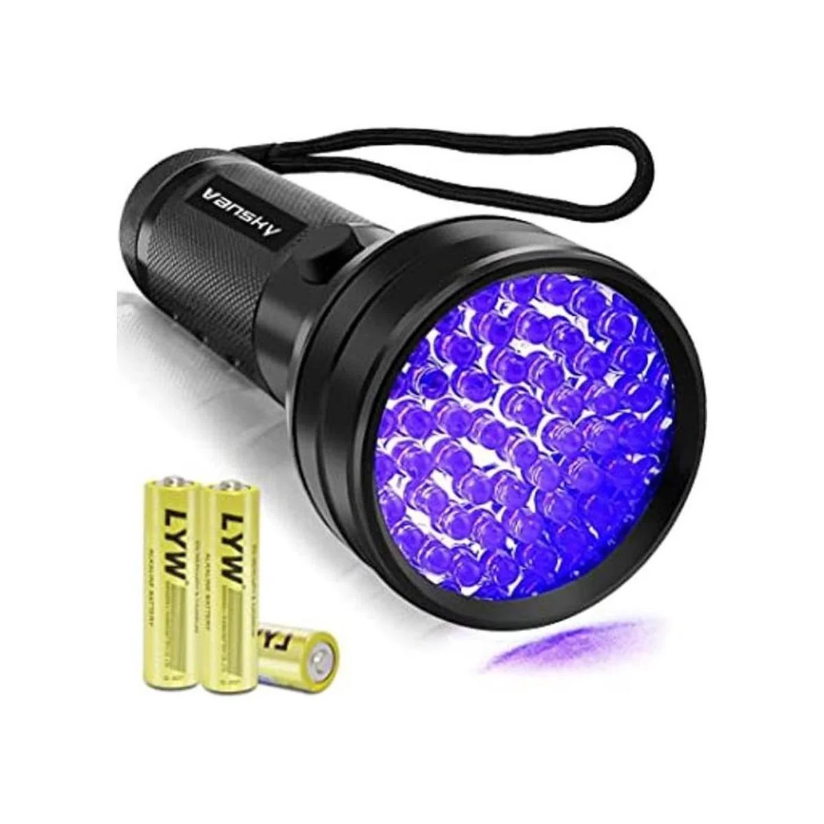 Vansky Linterna UV de luz negra, 51 LED de luz negra mejorada para orina de perrogato, manchas secas, chinches, a juego con eliminador de olores de mascotas pilas incluidas