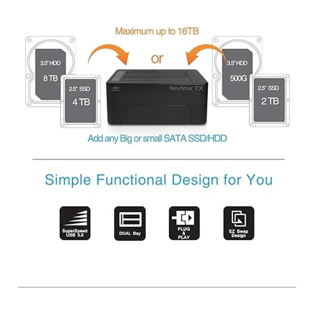 Vantec NexStar TX Dual Bay USB 3.0 Hard Drive Dock NSTD428S3BK