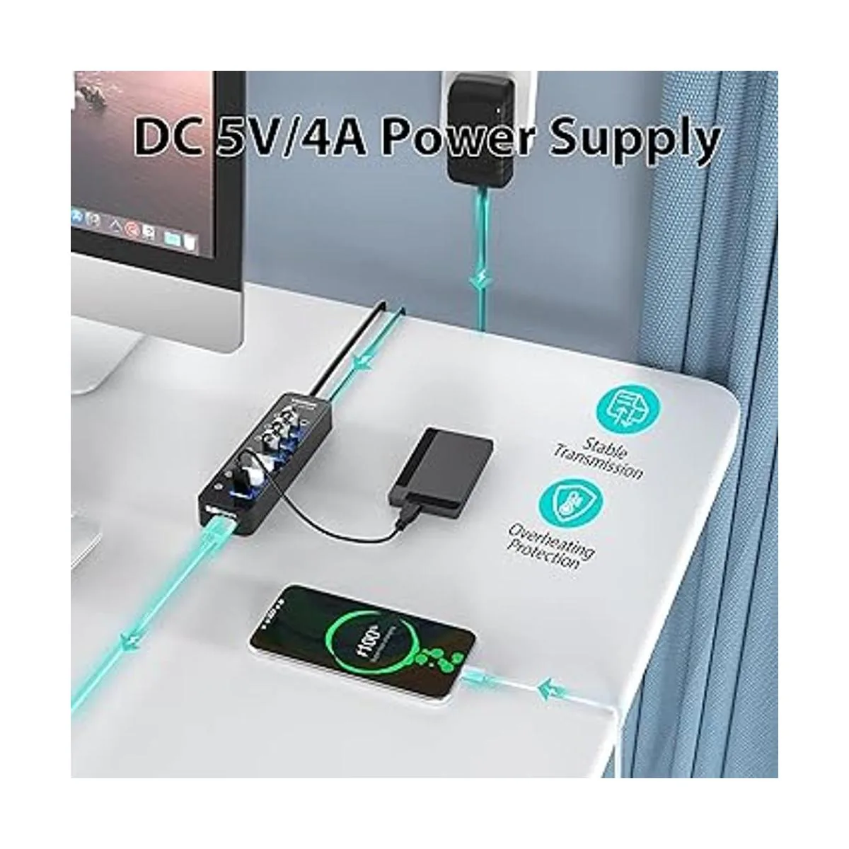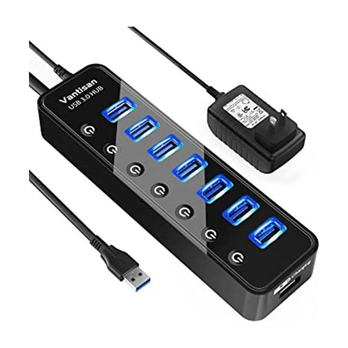vantisan Hub USB 3.0 alimentado, 7 puertos USB con un puerto de carga inteligente y adaptador alimentado de 5 V4 A e interruptores de encendidoapagado para MacBook, Mac ProMini, iMac, Surface Pro LaptopPC