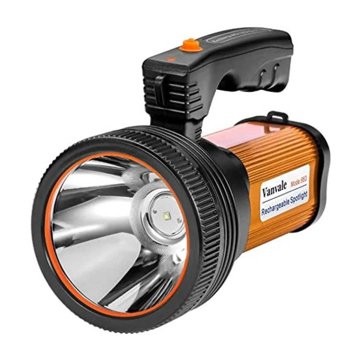 Vanvale Linterna táctica LED recargable de mano con asa, foco CREE L2 de 6000 lúmenes de alta potencia súper brillante antorcha con salida USB dorado