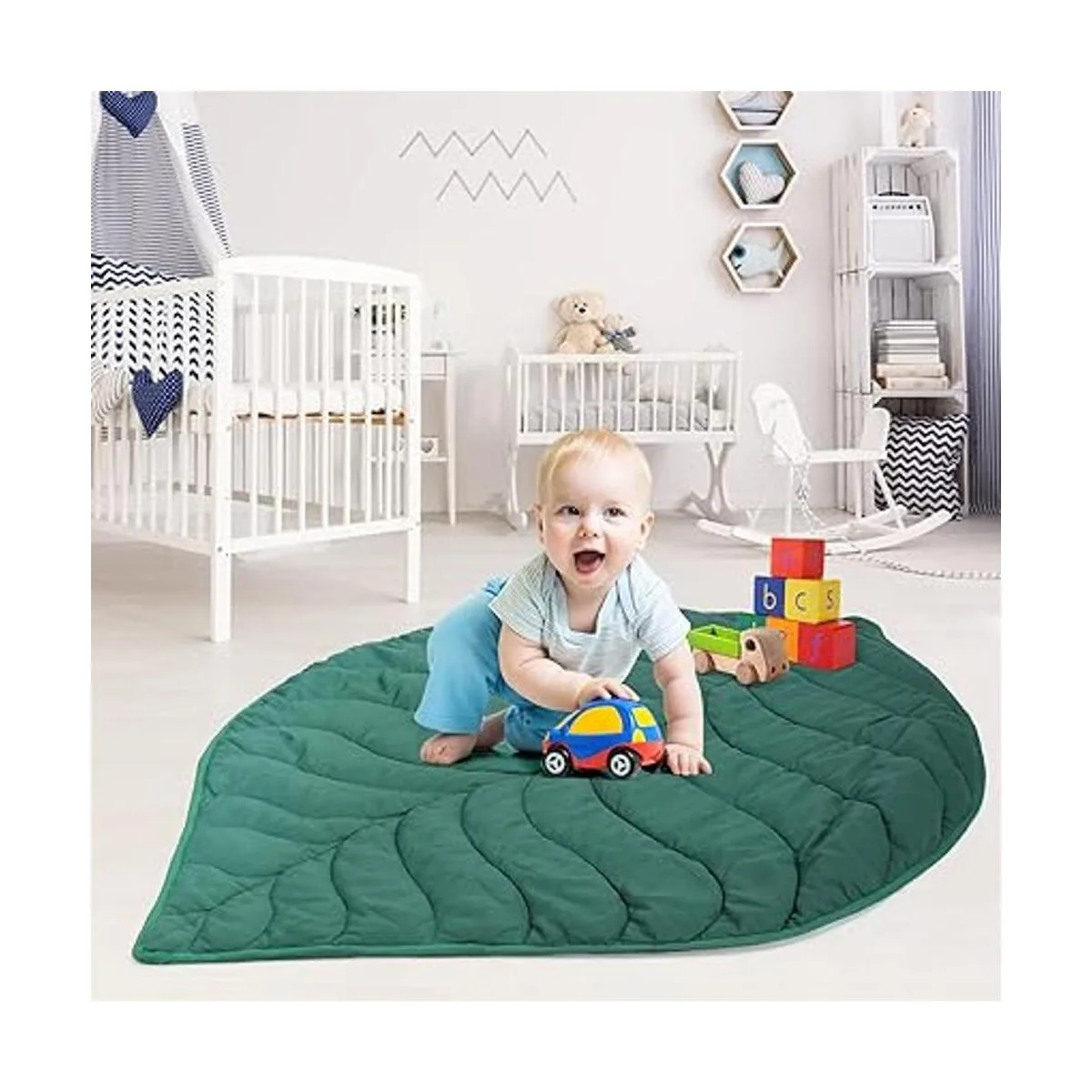 Tacto súper suave, esta alfombra de juego con forma de hoja mantiene a tu pequeño cómodo y duerme con facilidad sin preocupaciones. La alfombrilla es de dos lados, una es verde oscuro y la otra es gris, puedes elegir la superficie de contacto como quieras.