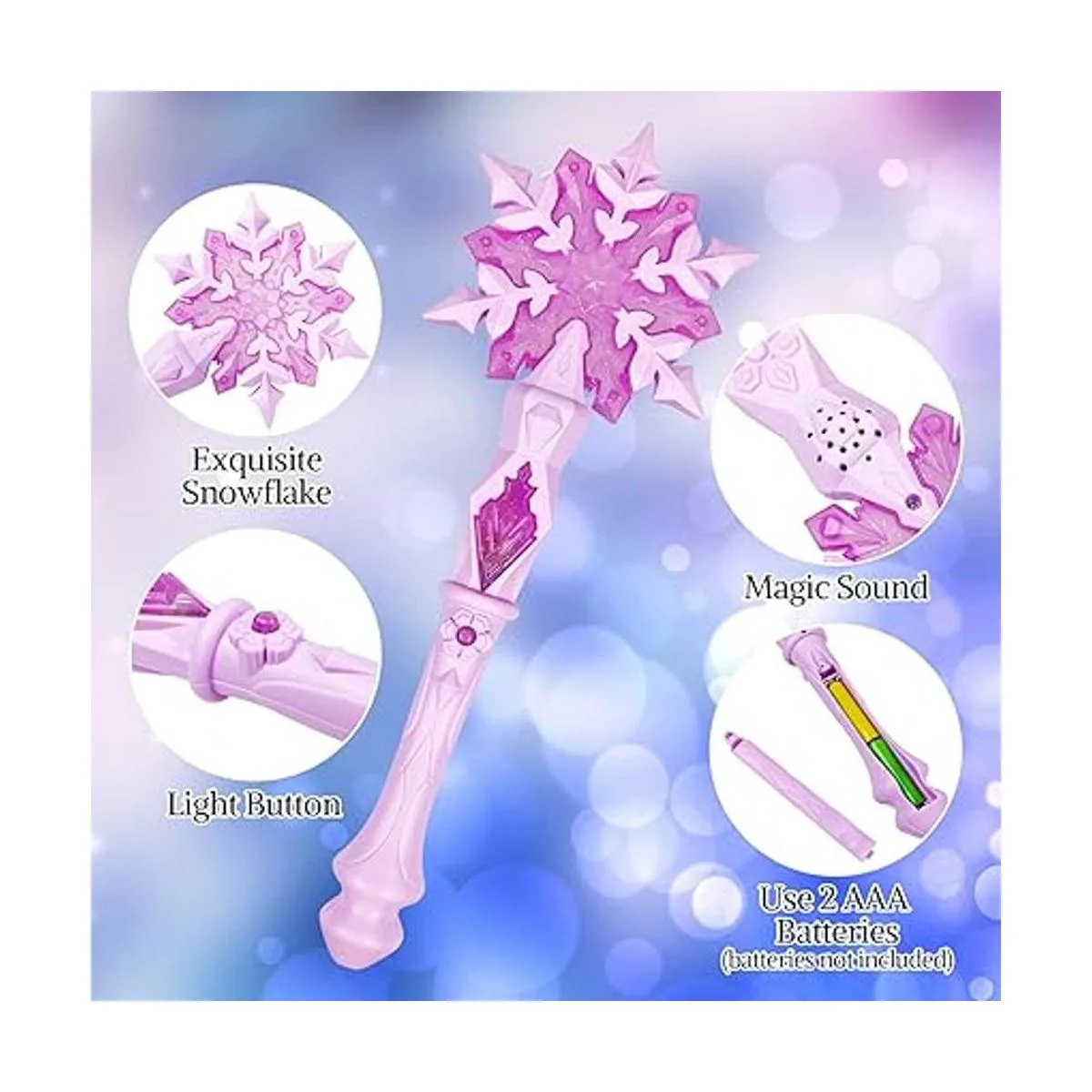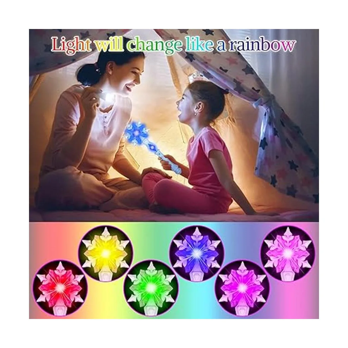 Iluminación llamativa: estas varitas mágicas están llenas de fascinantes efectos de luz, pulsa el botón, el copo de nieve de la parte superior de la varita cambiará 6 colores diferentes.